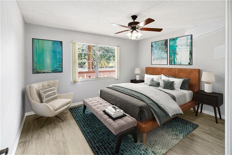 Beautiful 2 Bed 2 bath spacious condo that has been remodeled. Wood laminate floors throughout the entire home. Updated bathrooms, quartz kitchen counter tops. New AC unit with warranty. Large screened balcony with roll down shutters. Unit has own storage. This Resort style gated community offers: A Must-See Spectacular Club House, Golf, Billiards, Library, Ballroom, Hobby Rooms, Fitness Center, Interest Clubs Galore, Aquatic Center, Tennis Center, Theater, Pickle-ball, Walking and Bike Paths, Courtesy Buses for In and Outside Community and Much, More. Minimum credit score is 700, one person must be 55+. Association includes water, cable & Internet.