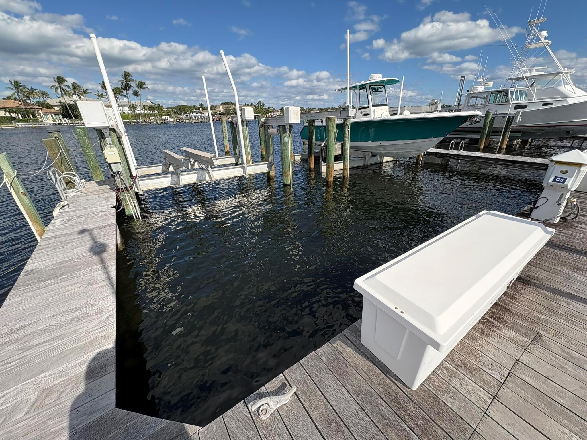 Twelve Oaks is one of North Palm Beach's most coveted gated waterfront enclaves. This unique and rarely available 3-bed/3-bath corner residence offers 2,200 sq ft of refined living space and includes a 50ft deeded slip with a 30,000-lb lift, power, and footlocker. This all-Inclusive luxury home for boaters has it's own private marina that sits directly on the deep waters of Lake Worth Lagoon. No fixed bridges means you can be on the open waters of the Atlantic Ocean in minutes. READ MORE!