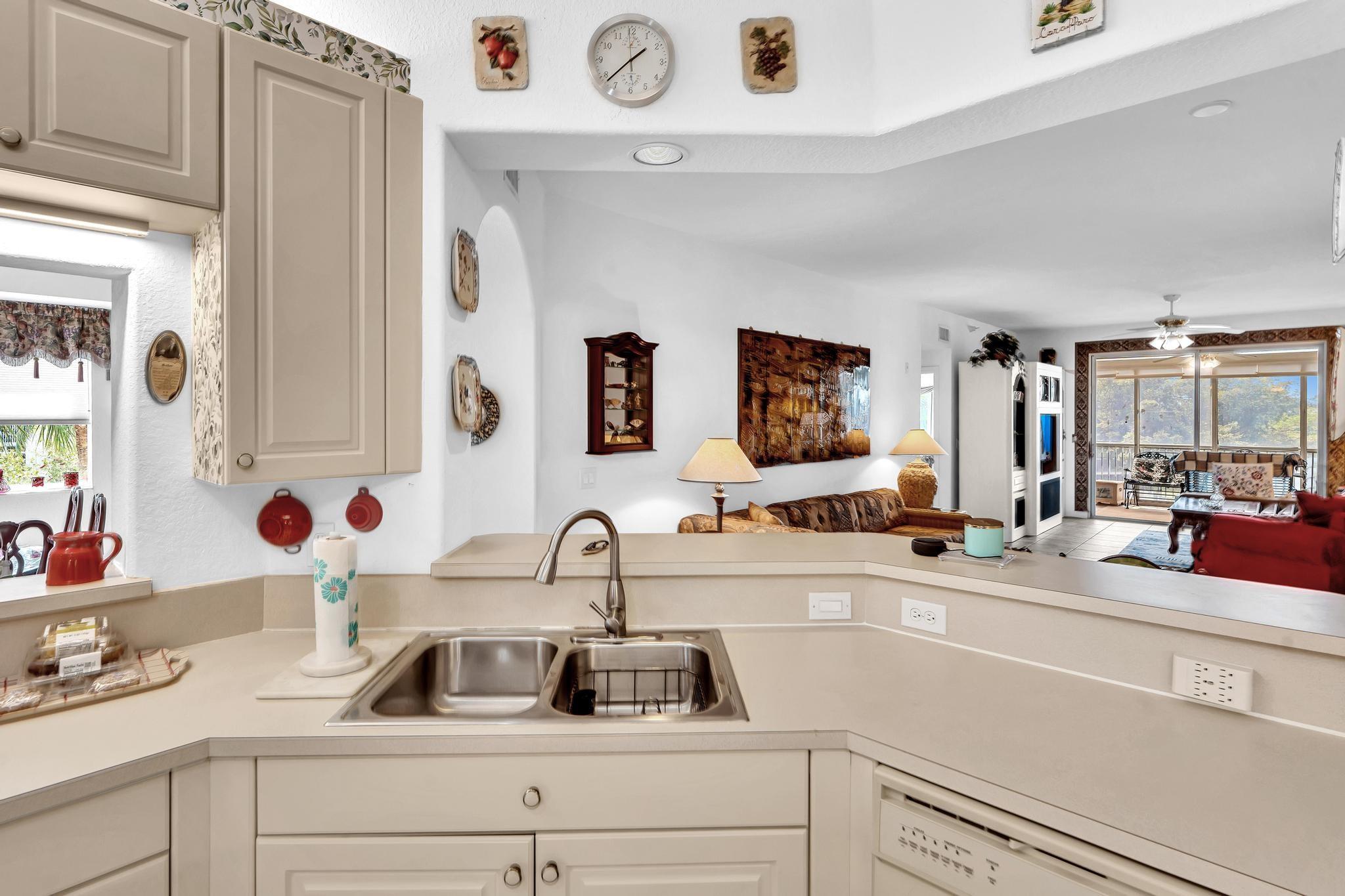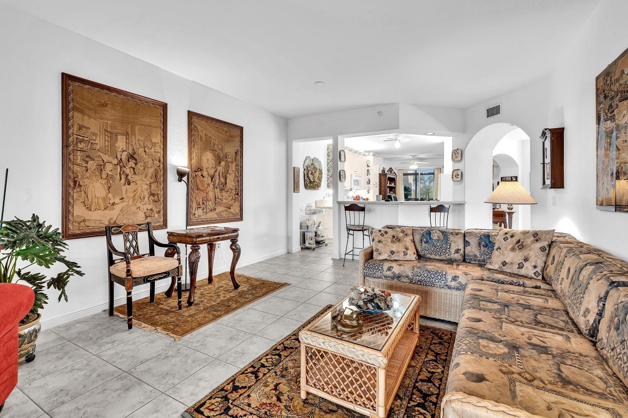 *Stunning Water View Corner Unit* 1986 sq. ft * This lovely home creates a fantastic and welcoming atmosphere with two bedrooms & two baths. The 2nd bedroom includes a Murphy bed for added convenience. There is a family room/den/formal dining room, which can also be used as a third bedroom. The kitchen features white cabinets & a custom island. Extra freezer. Tile flooring throughout the living area enhances the gorgeous open layout. The master bedroom boasts a spacious walk-in closet & a large soaking tub. Include a private laundry room & storage. Enjoy your front screened patio that greets you before getting to your front door & 2nd large balcony overlooking the water view, which is excellent for relaxing. Southampton is the only community that has a gym on the site. Guard at the gate.