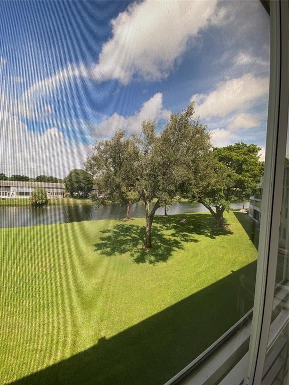 UPDATED, 1/1.5 WITH WATER VIEW IN PRIME WESTBURY AREA! Furnished. 785 sq.' condo with galley kitchen that boasts granite counter tops, recessed lighting. White and stainless steel appliances including a dishwasher 2022 AC with permit, tile flooring except in primary bedroom which has carpeting. Updated bathrooms, extra storage on enclosed patio with floor to ceiling sliders, and tranquil water view from your bistro set. Close to Westbury pool, plaza and main gate at Hillsboro blvd. Building boasts a 3 common area patios on the water for an early evening spirit or meal. PROOF OF FUNDS AND FICO SCORE TO BE PROVIDED WITH ALL OFFERS.