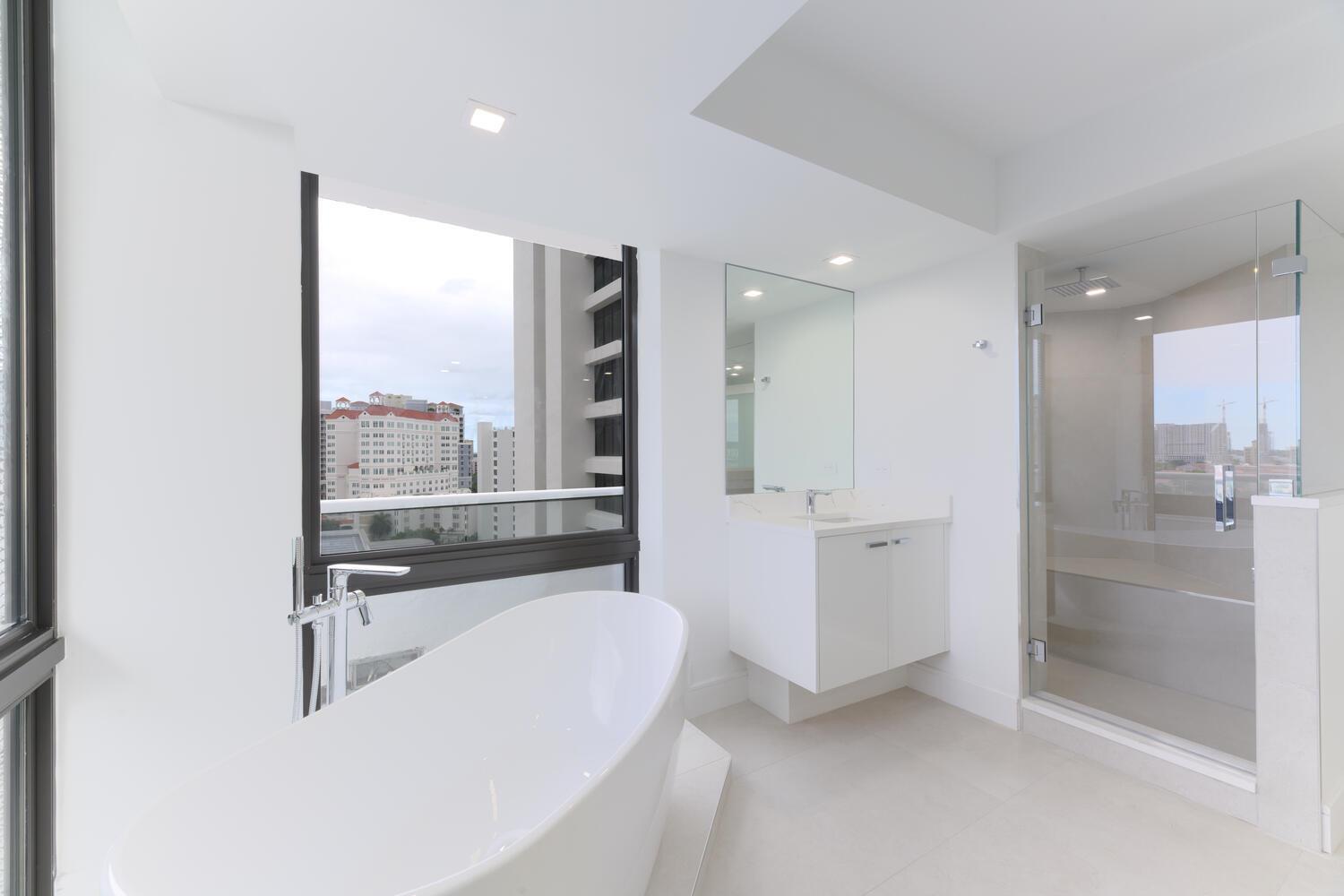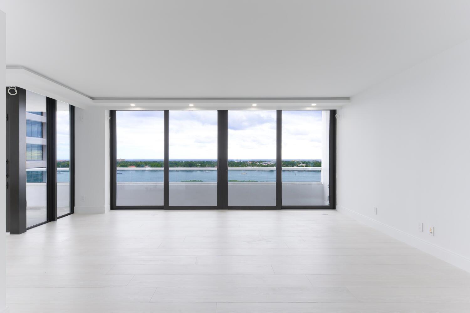 Sleek, modern and luxuriously fully renovated unit. Three bedroom, two and a half baths with sweeping views of the Ocean, Intracoastal Waterway, and the Island of Palm Beach. Over 2,400 total sq.ft. Generous living area. Features include Italian porcelain tile, Miele appliances, custom cabinets, hurricane impact doors and windows, custom walk-in closets, makeup vanity, designer quartz/porcelain countertops, motorized privacy shades, wet bar, surround sound, and ample storage space throughout. East and West exposures. Outdoor balcony offers exceptional living/dining space and water views. Full service, luxury building with 24-hour security, valet parking, concierge, two swimming pools, fitness room, conference room, and tennis court with pickleball. Pet friendly.
