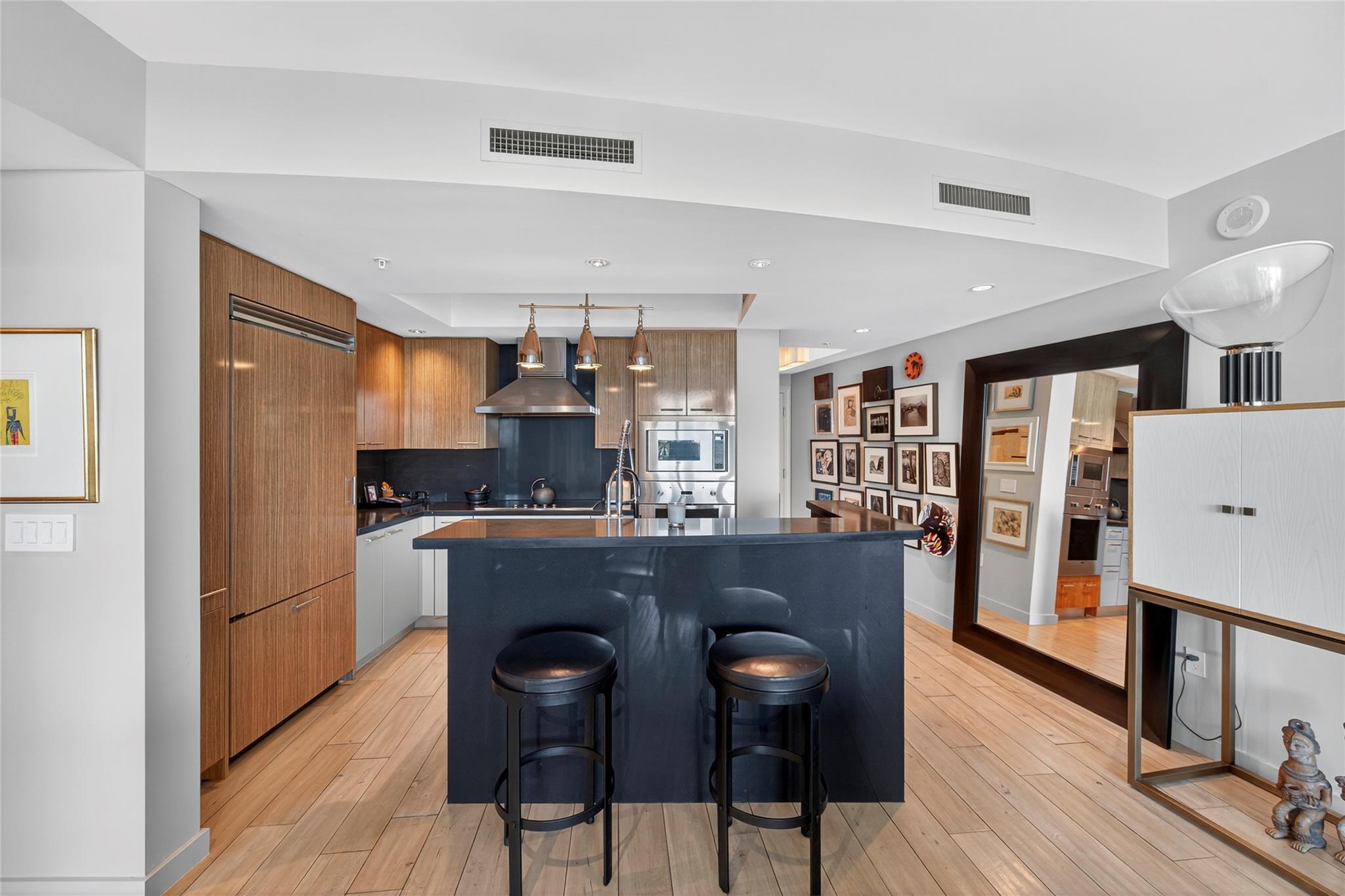 INCREDIBLE 2 BR / 2 Bath Condo located in the very HEART of POMPANO BEACH! CLOSE to Pier, Beach, restaurants and shops! This unit includes all the DESIGNER finishes: European Kitchen with GRANITE Countertops and VIKING appliances. BEAUTIFUL WOOD FLOORS throughout, MARBLE in the Bathrooms! REMOTE CONTROL SHADES. EXTRA LARGE BALCONY that extends the full length of the unit with GARDEN, POOL and Peekaboo INTRACOASTAL VIEWS! CUSTOM WINE COOLER and EXTRA ICE MACHINE. SPECTACULAR Building with all the RESORT STYLE AMENITIES: Pool, Hot Tub, Cafe (Free Breakfast), Billiard Room, Wine Vault, Theater, Fitness Center, Sauna. Air Conditioned Extra Storage Locker. This unit has 2 Parking Spaces in the Covered Garage. MUST SEE TO APPRECIATE!
