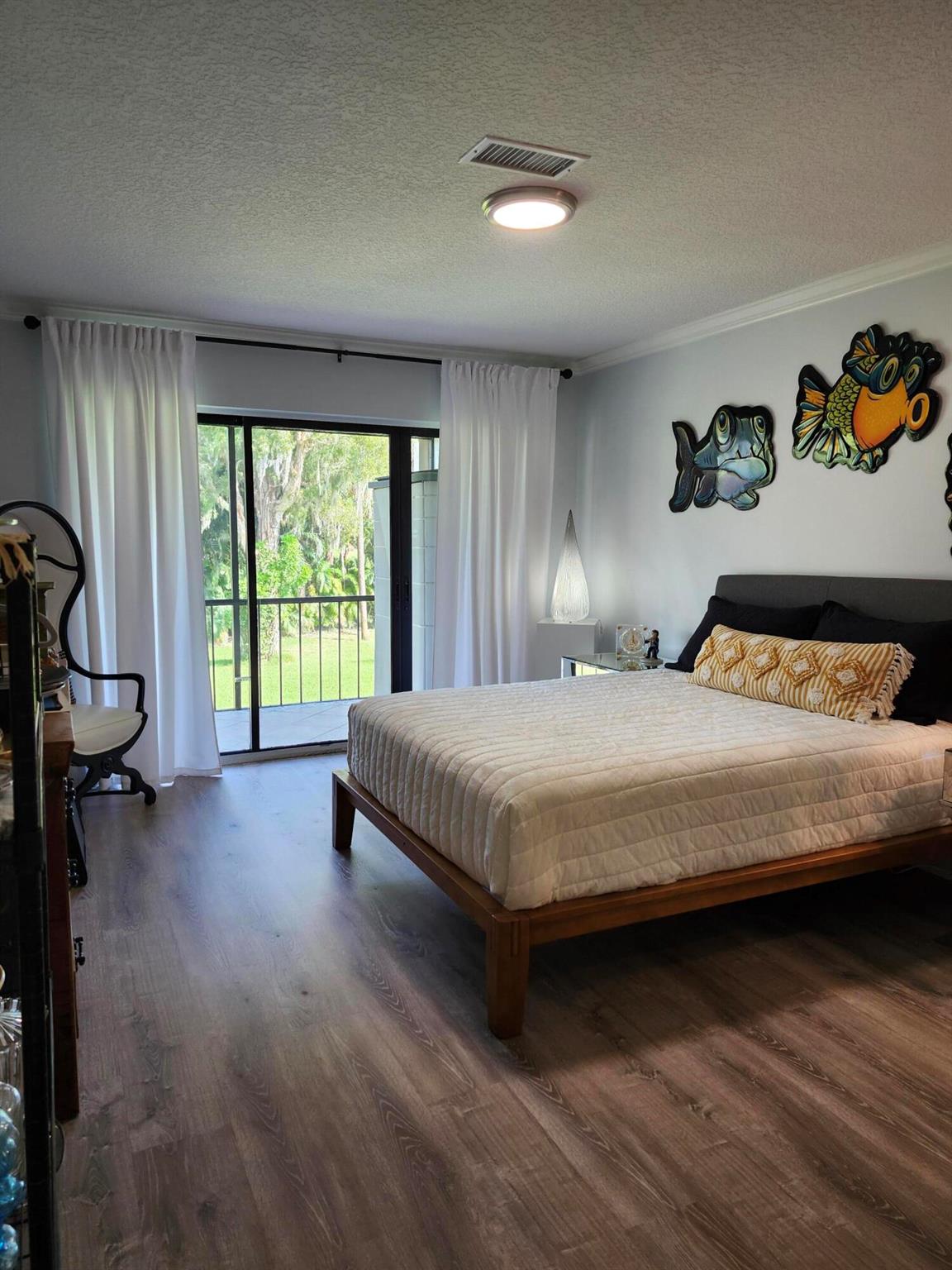 Welcome to prestigious Lands of the President gated community. This modern and spacious second floor unit remodeled just a few years ago with LVP flooring throughout. Enjoy the peacefulness of backing up to a private golf course (Dutchmen's Pipe) yet the convenience of everything in West Palm Beach-The Kravis Center, Tanger Outlets, the beach, airport (3 miles) and Palm Beach island. Two large ensuites with ample, multiple closets, modern walk-in showers and new, extra wide impact front door. In unit washer and dryer. Fifty five foot long, covered balcony with sliding doors from all rooms lets in lots of natural light. Gated entrance with dedicated pool. Walk to the outlet mall!!