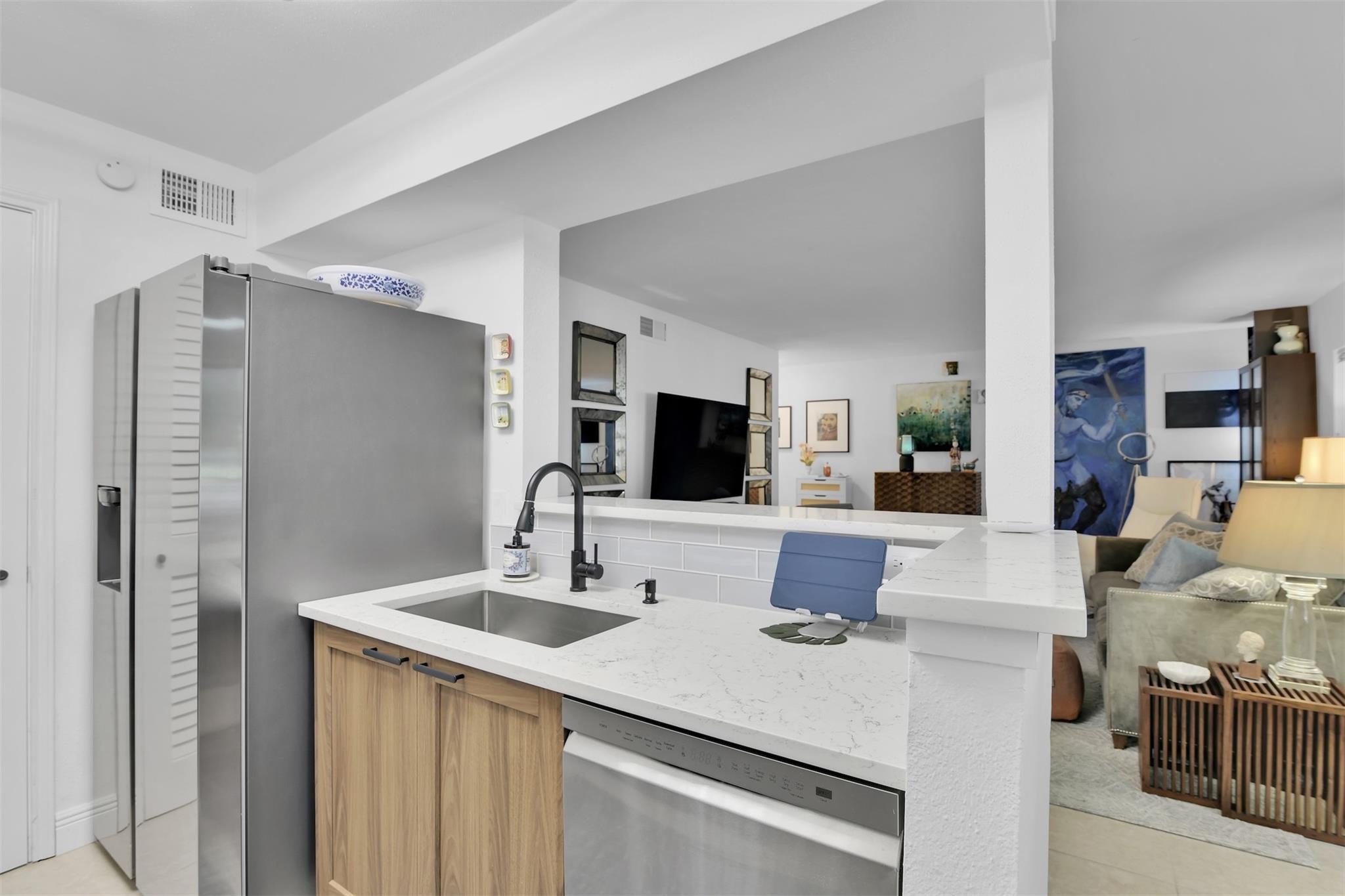 This beautifully updated 2 bedroom 2 bath home features new ceramic tile floors thru out, new kitchen cabinets with quartz counter tops as well as new kitchen appliances and new washer dryer as well as a beautifully updated primary bathroom. Enjoy the relaxing Lake View from your screened in private balcony. Balcony comes complete with your own private staircase that goes directly to the Lake, perfect for a morning or evening stroll! Complex is gated & pet friendly and has many amenities including....Club House, Pool, Hot Tub, Gym, Tennis Court, Basketball. The open concept kitchen offers a breakfast bar and don't miss the large pantry closet! Conveniently located near schools, shopping and easy access to I95. The complex offers ample parking and is located close to the Clubhouse.
