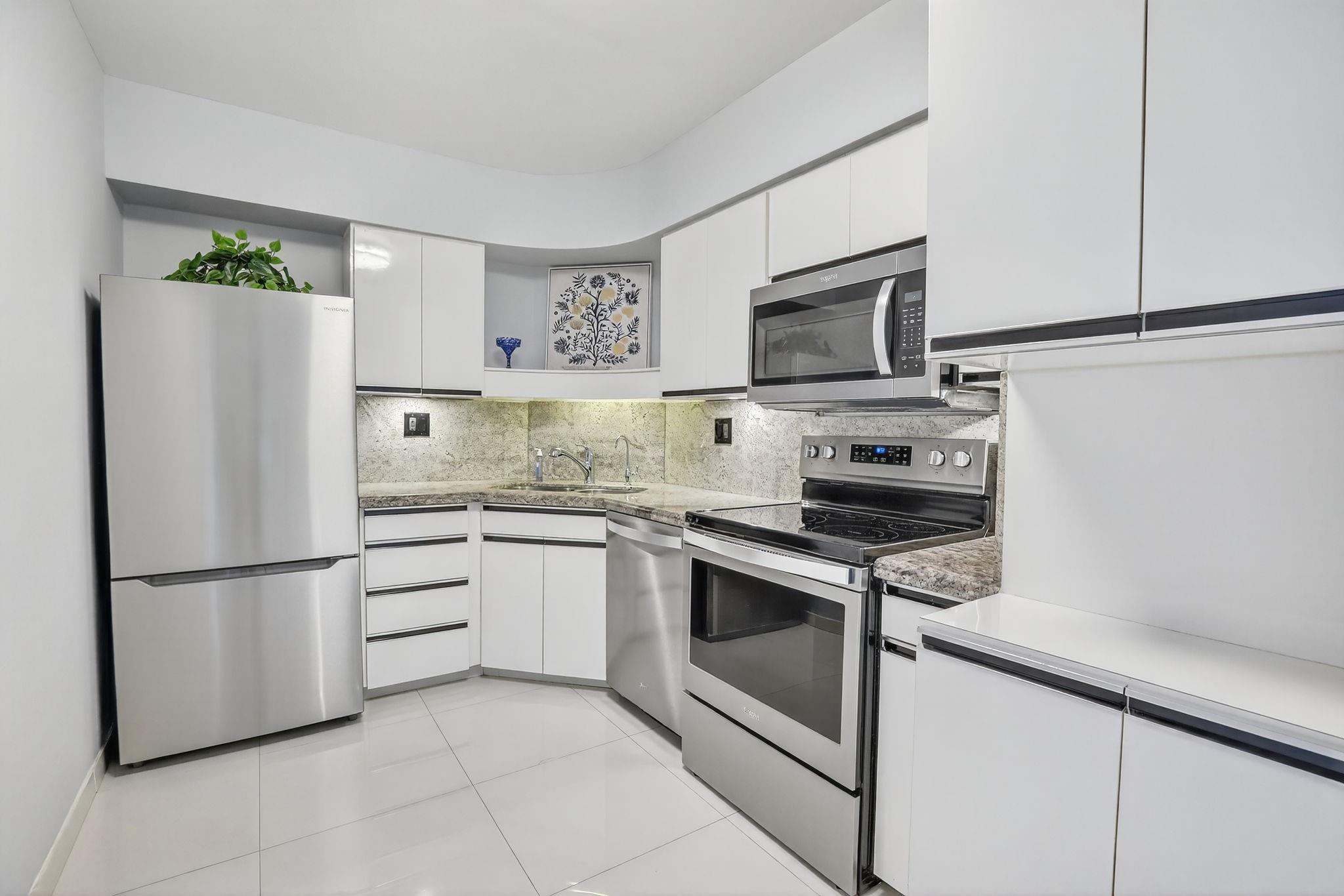 THIS BEAUTIFULLY UPDATED, CORNER APARTMENT, IN MINT CONDITION. HAS EXTRA WINDOW IN DINING AREA THAT OPENS INTO SPACICOUS BRIGHT LIVING ROOM, OVERLOOKING WELL MAINTAINED GARDEN GROUNDS. RENOVATED KITCHEN FEATURES SLEEK CABINETRY, GRANITE COUNTERTOPS, ALL STANLESS STEEL APPLIANCES AND A NEW REFRIGERATOR. NEWLY INSTALLED UNDER-COUNTER RECESSED LIGHTING HIGHLIGHTS THE COUNTERS. BOTH SPACIOUS BATHROOMS HAVE BEEN FULLY UPDATED WITH CONTEMPOARY FINISHES, BOTH OFFER EASY ACCESSABLE WALK-IN SHOWERS. THIS UNIT HAS BEEN FRESHLY PAINTED AND FINISHED WITH ELEGENT 24-INCH PORCELAIN TILE FLOORING THROUGHOUT, GIVING IT A CLEAN, COHESIVE LOOK. BUILDING HAS JUST COMPLETED MAJOR CONCRETE RESORATION WITH INSTALLATION OF GLASS BALCONIES. RESIDENTS ENJOY RESORT-STYLE AMENITIES WITH JUST A SHORT WALK TO BEACH.