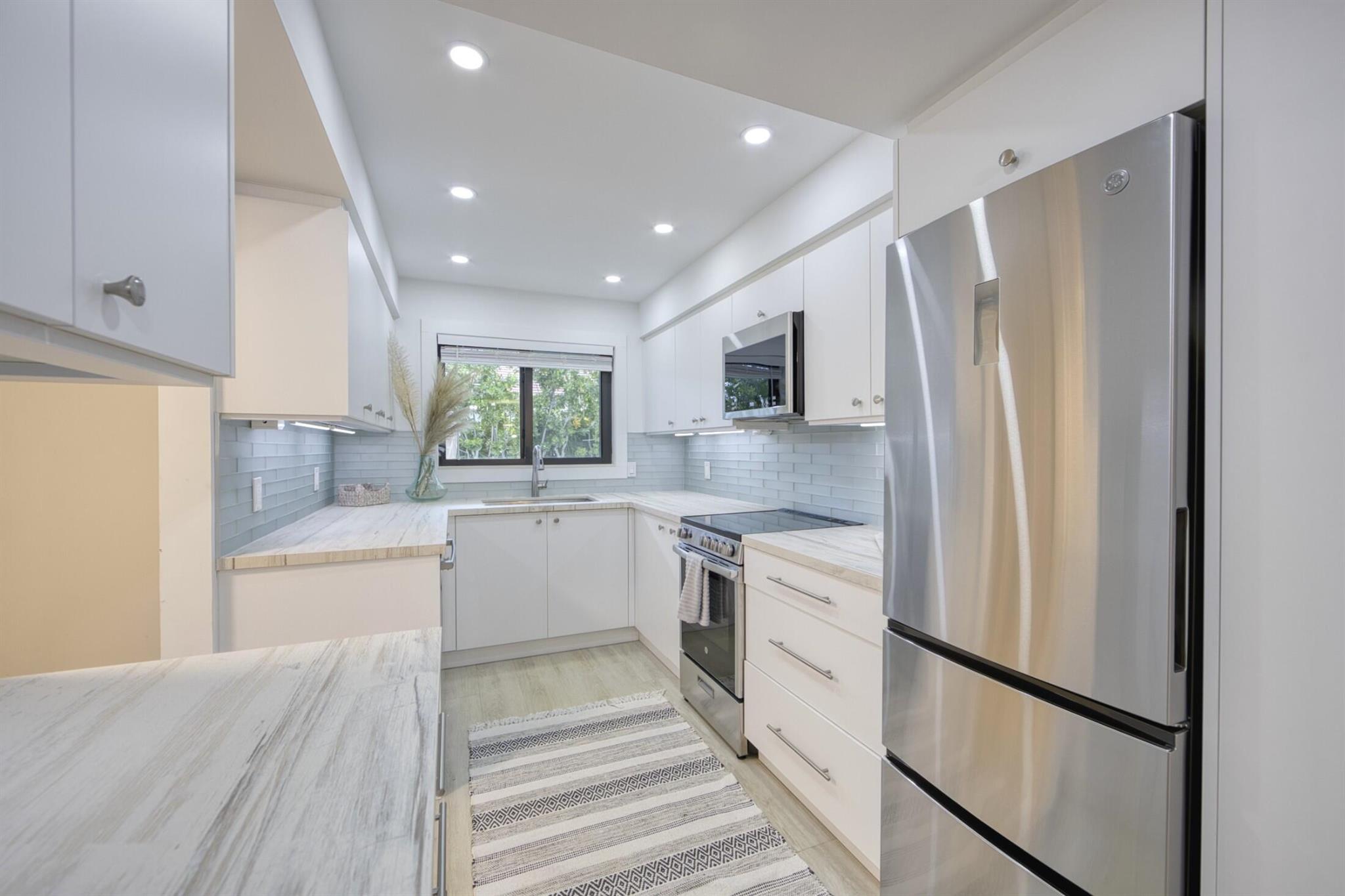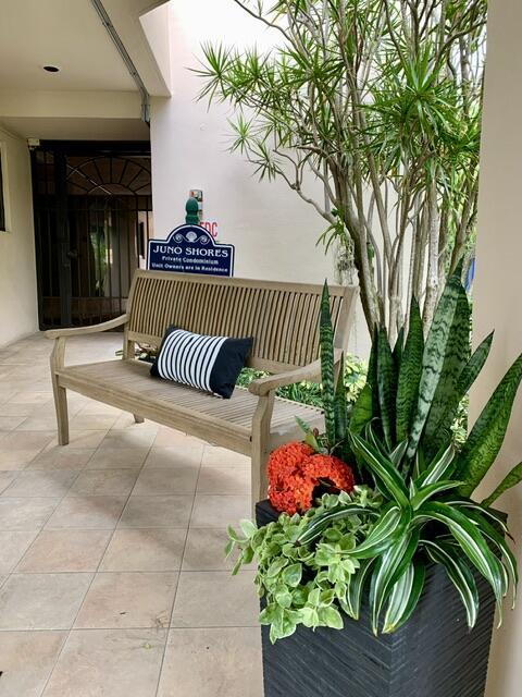 Experience the quintessential coastal lifestyle in this fully renovated ground-floor condo, just steps away from the tranquil shores of Juno Beach. Forget elevators and long walks, simply step out your door and feel the sand between your toes. Since 2021, this unit has been completely reimagined with a clean, beachy aesthetic from floor to ceiling. The new, modern kitchen is equipped with sleek stainless steel appliances, porcelain countertops, and a stunning sea glass backsplash that brings the ocean's palette indoors. With new hurricane windows and a recently replaced AC system, comfort and peace of mind are guaranteed. Enjoy the fresh, updated building, which recently replaced all its windows and resurfaced the pool, providing a pristine setting for your new life by the sea.