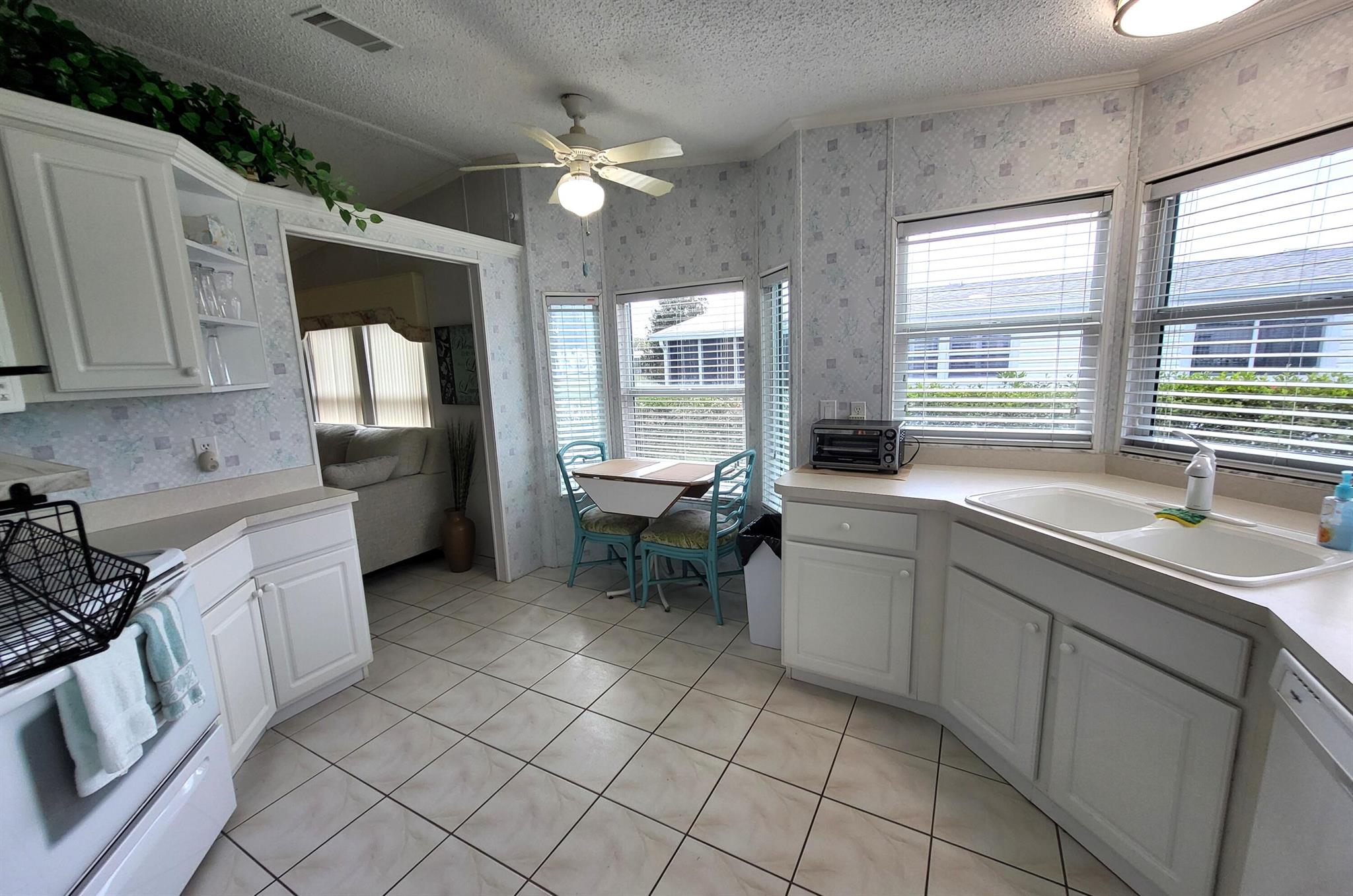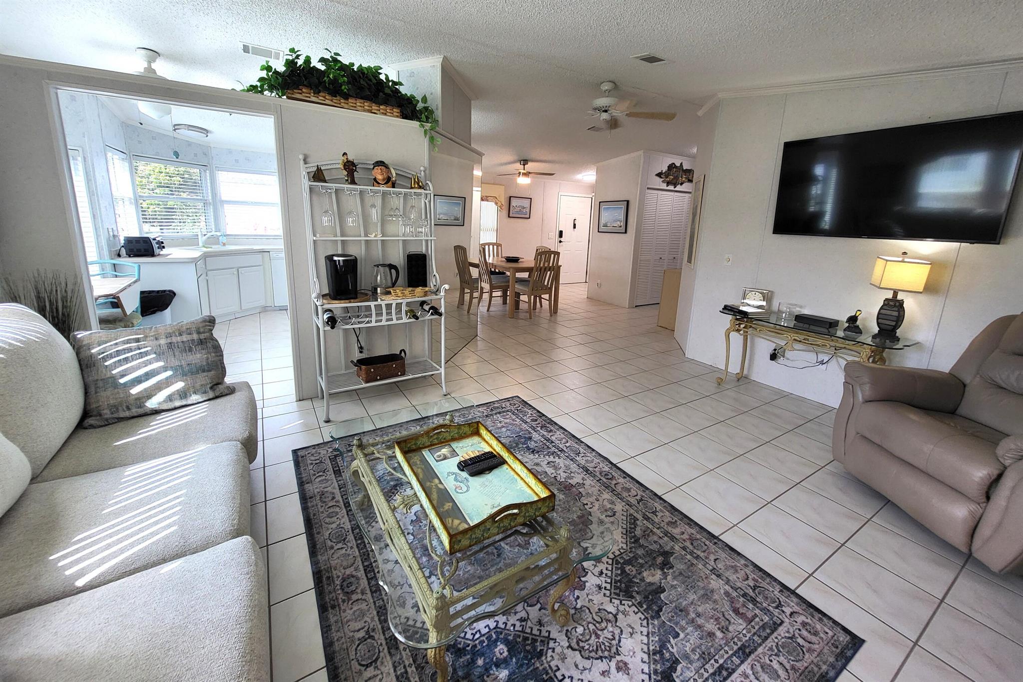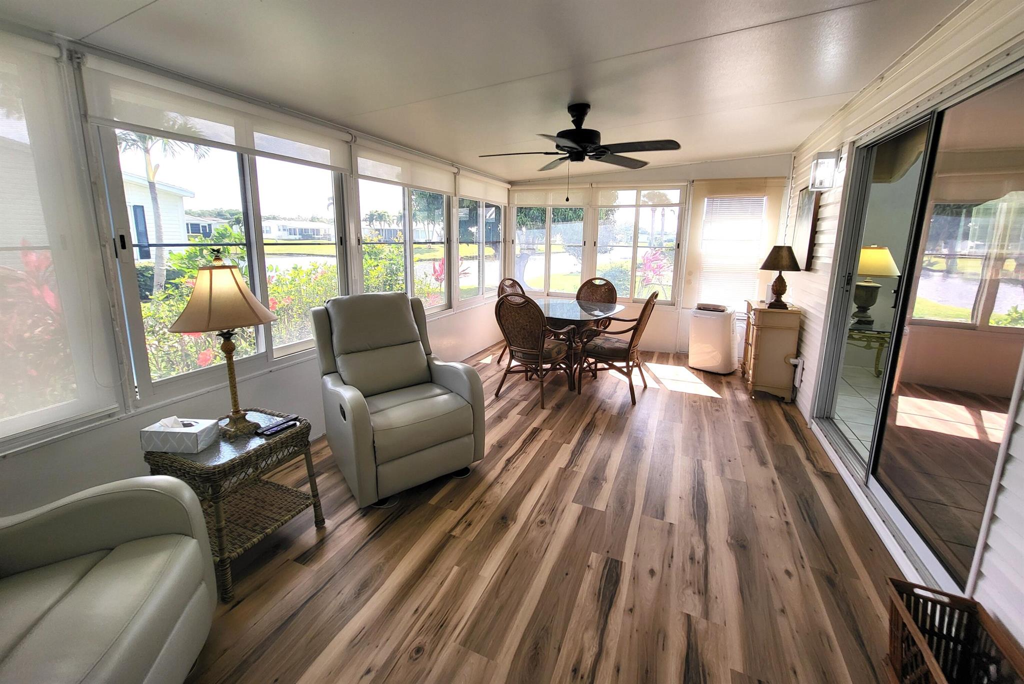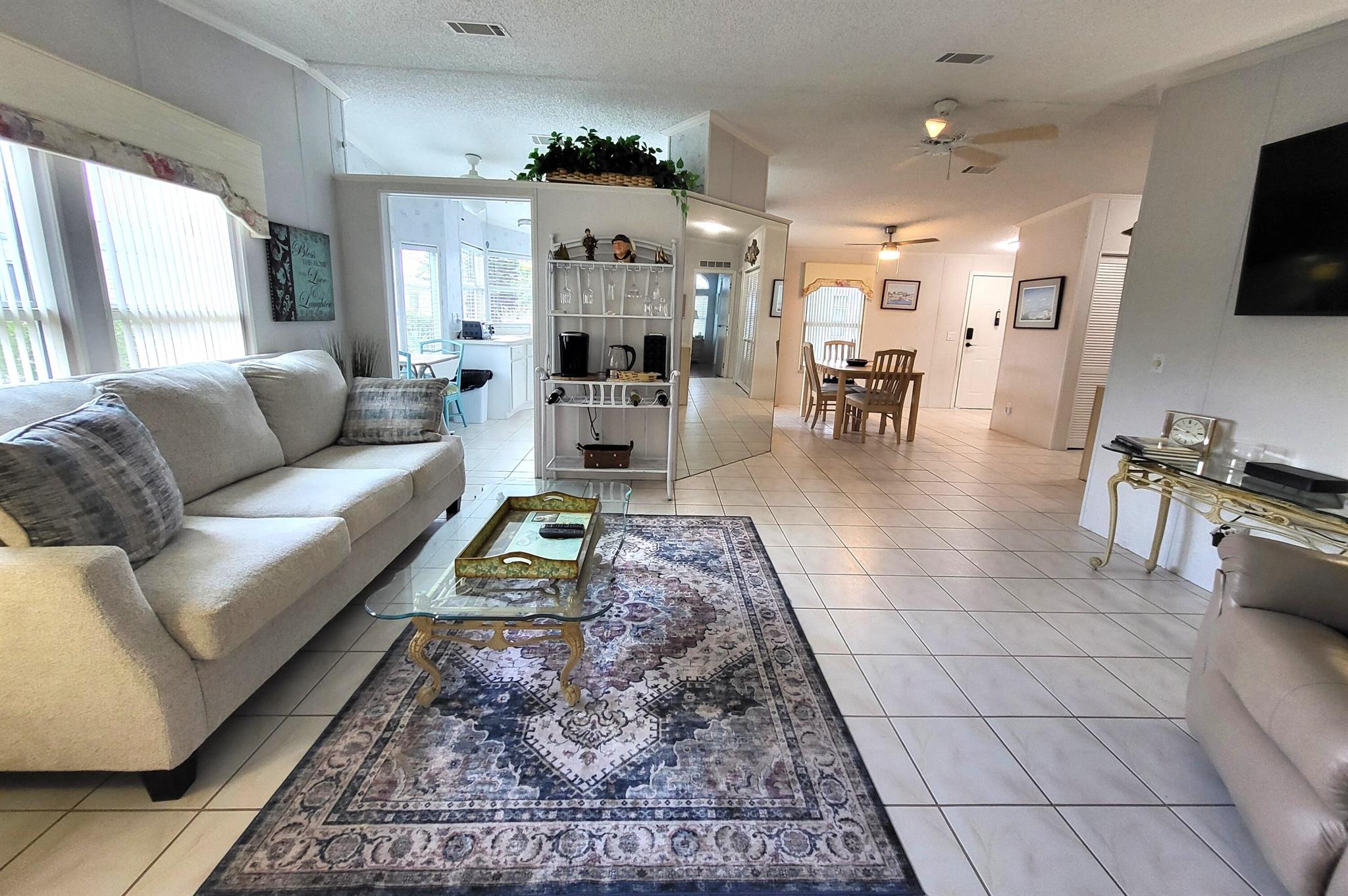 LAND OWNED! Beautiful 2 Bedroom, 2 Bath Turnkey Home in Savanna Club 55+ Community. This one-owner, fully furnished, home has been beautifully maintained, offering over 1,200 sq. ft. of comfortable living space and a bright, open layout designed for easy Florida living. Inside, you'll find a large Florida room overlooking a lake, and a bright living room, dining area, and kitchen--perfect for entertaining friends or enjoying a quiet morning coffee. The primary suite features a large closet, granite vanity, and an easy access shower. Your guest bedroom and full guest bath make visitors feel right at home. Step through glass sliders into your enclosed Florida room (lanai) with impact windows, AC, and a ceiling fan -
