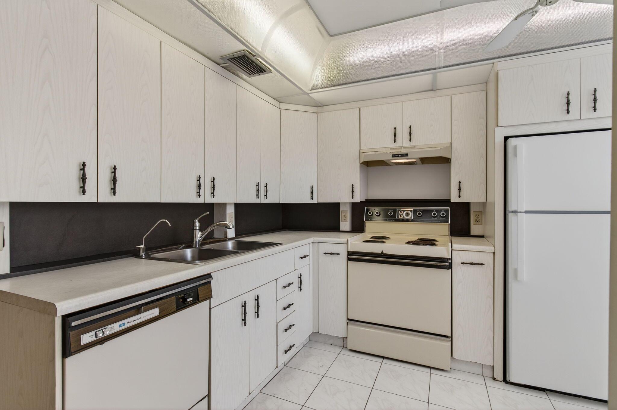 CENTURY VILLAGE--SUPER ACTIVE ADULT COMMUNITY, (55+).Immerse yourself in the brilliance and bounty of this corner condominium located at 2001 Guildford A, Boca Raton, FL. This luminous unit infuses a sense of openness and ample comfort with its cheerful, airy ambiance.You'll be able to venture into this property to find a generous kitchen, characterized by large windows that bathe the area in an inviting glow. The kitchen is designed for functionality, with dual sinks for meal prep and abundant storage space in numerous cabinets. An eat-in space provides a perfect place for casual meals or enjoying coffee as sunshine pours through the window.A soft carpet underfoot leads you to the expansive living room and dining room.