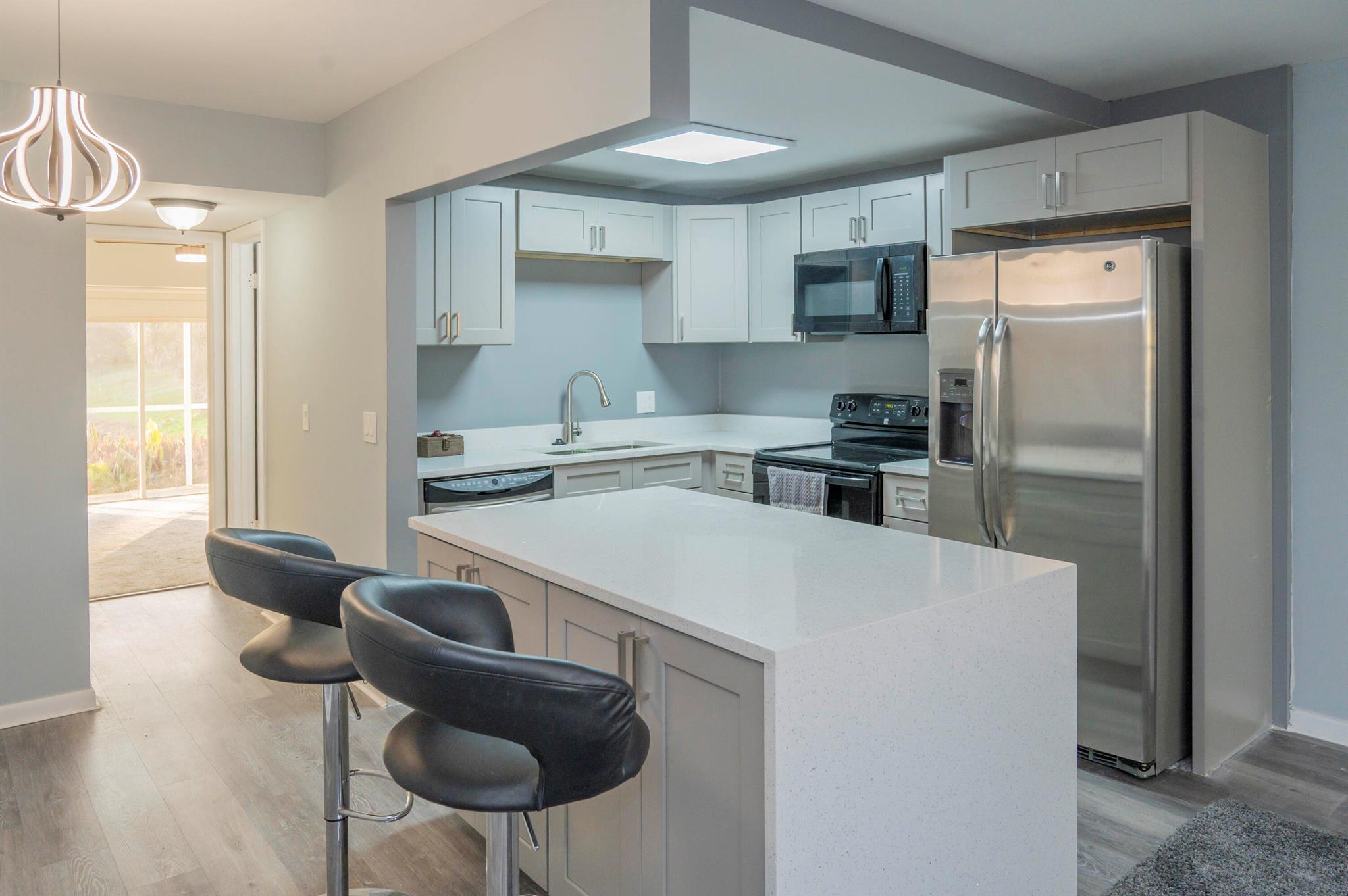 First-floor, move-in ready 1-bedroom, 1-bath condo in the vibrant 55+ Century Village community of West Palm Beach. Recently renovated with new flooring, fresh paint, a modern bathroom, and open-concept kitchen featuring a waterfall island, quartz counters, new cabinetry, and stainless-steel appliances. Enjoy lake views from the screened patio, abundant natural light, accordion shutters on all windows, and a community roof replaced in 2021. Also available for rent.
