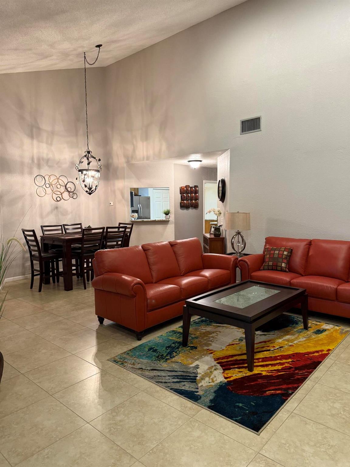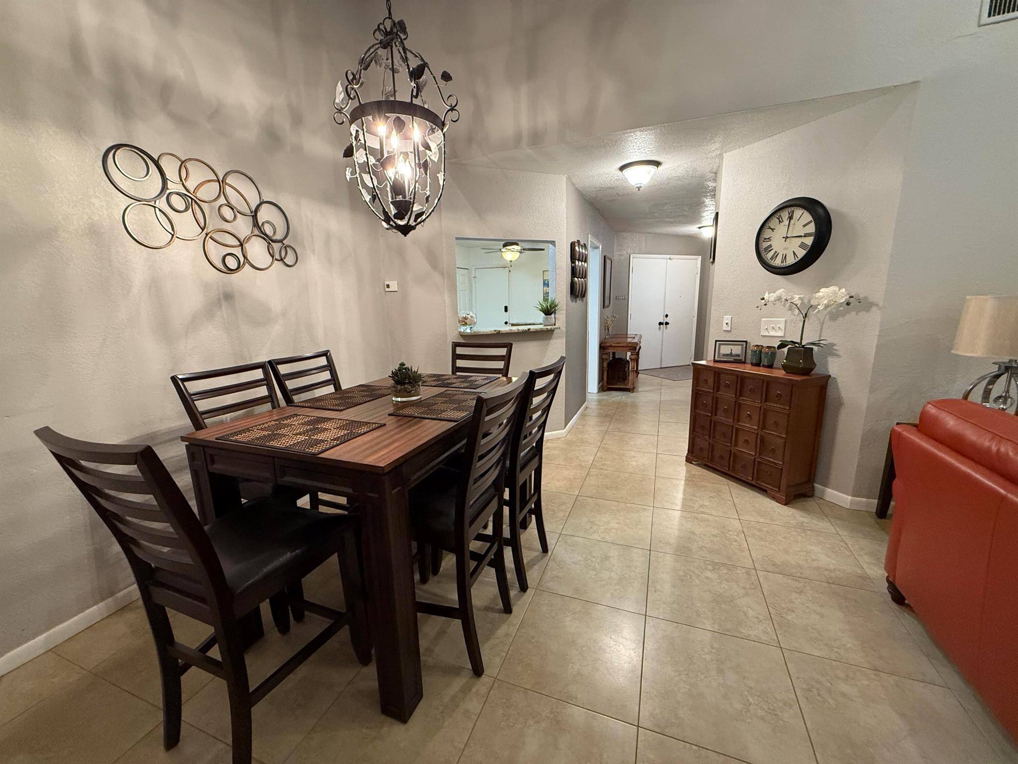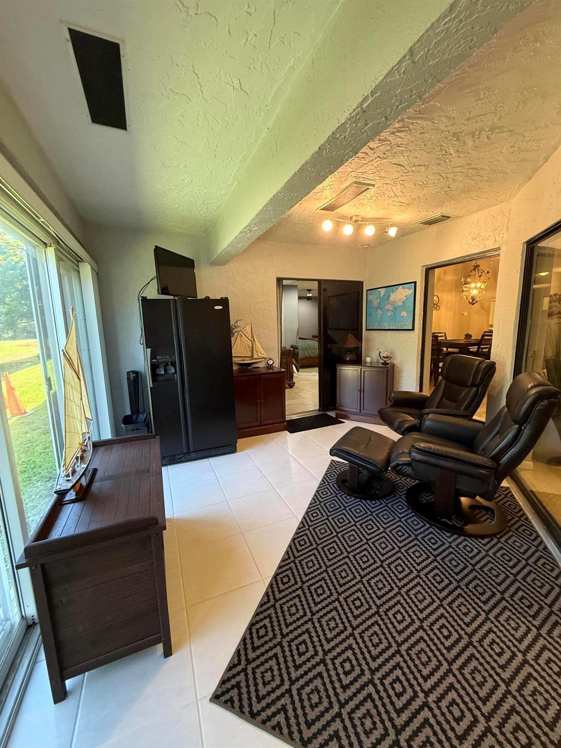 This corner unit villa with 3 bedrooms, 2 bathrooms and a one car garage is located in Lantern Walk. The home is a split floorplan and has cathedral ceilings. There has been updating to the large eat in kitchen and other areas of the home. There is ceramic tile throughout. An extra bonus to this home is an enclosed air-conditioned sunroom that adds to the living space, and you can see the golf course and water views from the sunroom and the primary bedroom. The neighborhood has a pool and a clubhouse where you can enjoy the Florida weather.