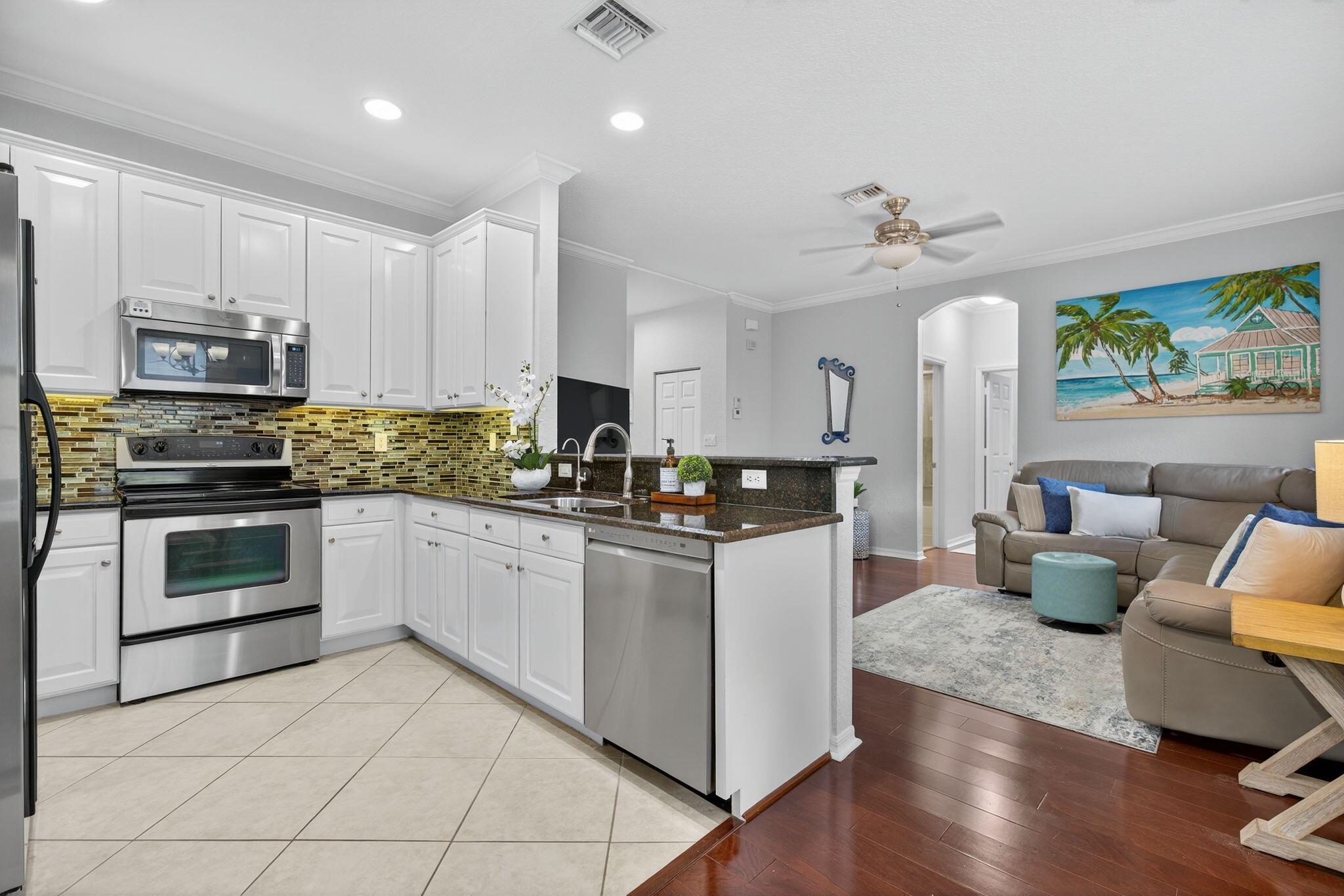WELCOME HOME! This beautifully designed and meticulously maintained 2-bed, 2-bath condo with a spacious flex room and unique covered, open-air balcony, is nestled in the highly sought-after community of Botanica in Jupiter, FL. This unit offers spacious single-level living, combining comfortable style and UNBEATABLE CONVENIENCE--just minutes from pristine beaches, golf, shopping, and A-rated schools. Step inside to an open-concept layout filled with natural light and thoughtful design details. The beautiful, bright kitchen features granite countertops and crisp white wood cabinetry---perfect for both daily use and entertaining. The home is equipped with complete impact glass for storm protection, energy efficiency, and peace of mind.