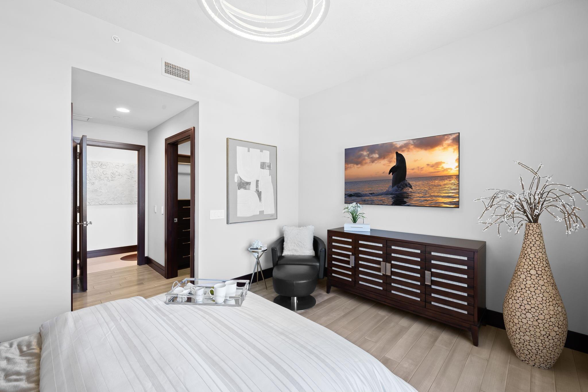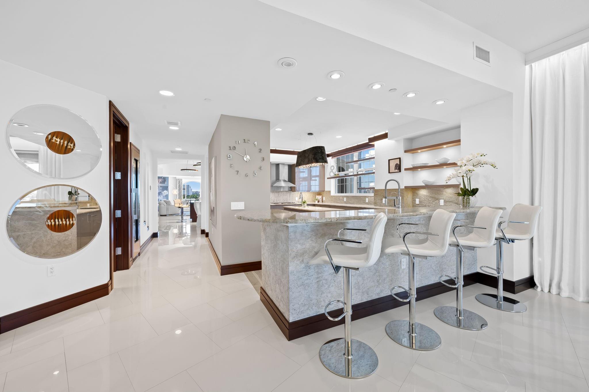 Experience luxury living in this exceptional PENTHOUSE located in one of Boca Raton's prestigious boutique buildings beachside. As the elevator opens into a private foyer, you'll be immediately drawn to the elegant light-infused 42x30 FT grand salon. Boasting over 10 FT ceilings & 4 expansive balconies that add up to nearly 1,000 SF, this extraordinary residence exudes the ambiance of an elevated home. The versatile floor plan includes 3 beds, a media room, a large gourmet kitchen with a gas cooktop, Subzero & Wolff applianc, and a spacious family room. The primary suite offers a custom-fitted closet, a cozy sitting area, and its own terrace. High-end materials & finishes are present throughout, featuring custom built-ins, lighting, and wine storage. This property is truly one-of-a-kind.