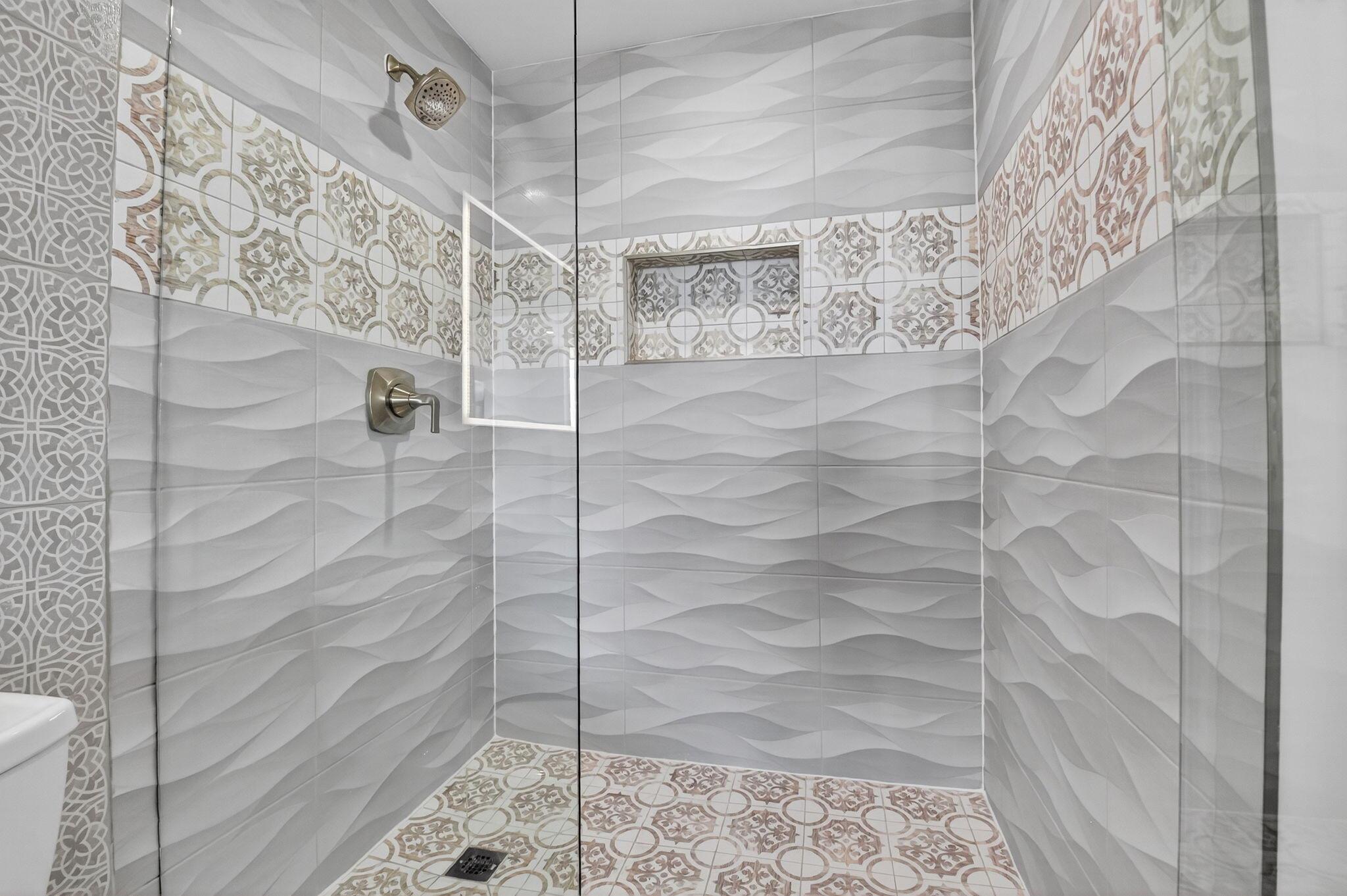 This completely reimagined one-bedroom residence at CityPlace South Tower offers high-end finishes, exceptional light, and one of the largest balconies you'll find in a 1-bedroom downtown. Updated from top to bottom, the home features wide-plank, wood-look tile flooring throughout and recessed lighting that makes the entire space feel light, bright, and airy. The kitchen is a showstopper, with quartz waterfall countertops, sleek custom cabinetry, upgraded appliances, and a modern backsplash, perfect for both everyday living and entertaining. The bathroom has been transformed into a spa-like retreat with floating vanity cabinetry, gorgeous tilework, and a walk-in shower in place of the original tub. The spacious bedroom is complemented by a custom-built walk-in closet with tailored