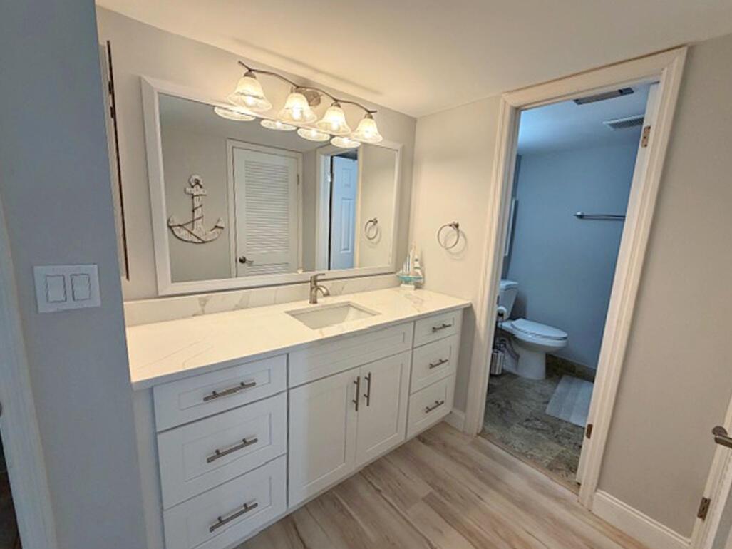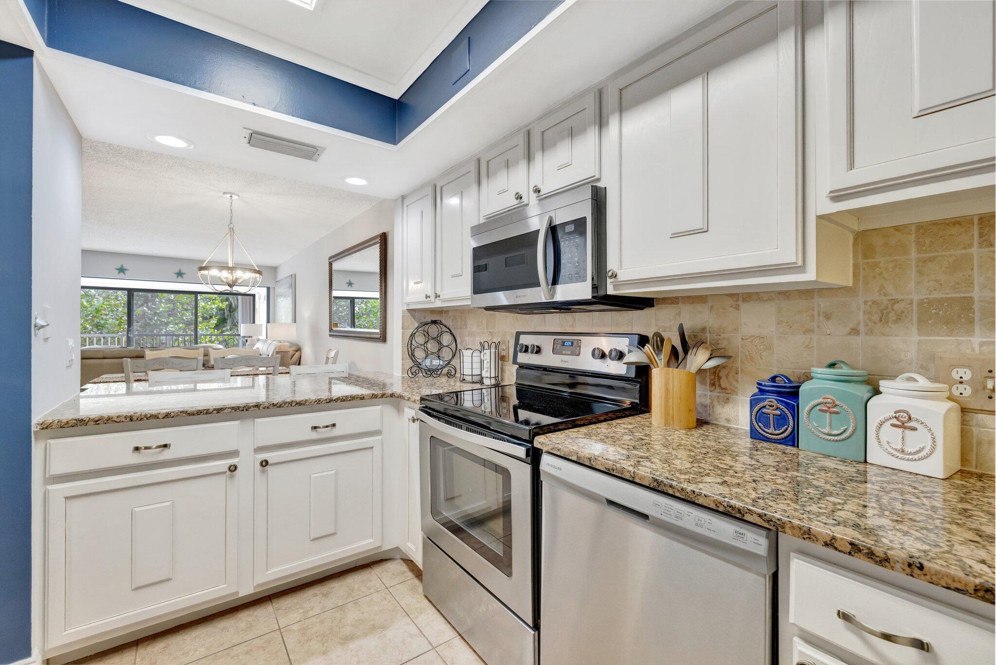 Beautiful 2 bedroom 2 bath furnished ''Beachtree I'' condo at Ocean Village. This light bright end unit is beautifully renovated including extended living room, granite kitchen counertop, new master vanity, new LVP flooring, washer/dryer, microwave, french doors to master suite, electric sun shade & newer A/C system. Spacious exterior storage closet. Beautiful & serene garden views. Excellent rental unit if owner so desires. Only steps to the ocean! Enjoy the best of Florida living at this beautiful oceanfront community with resort style amenites including 24 hr gated entry, 9 hole par 3 golf, tennis, pickleball, bocce ball, library, 4 heated pools, new clubhouse & fitness center, beautiful new main pool, oceanfront restaurant & tiki bar. 3500 ft of oceanfront. Measurements approximate.