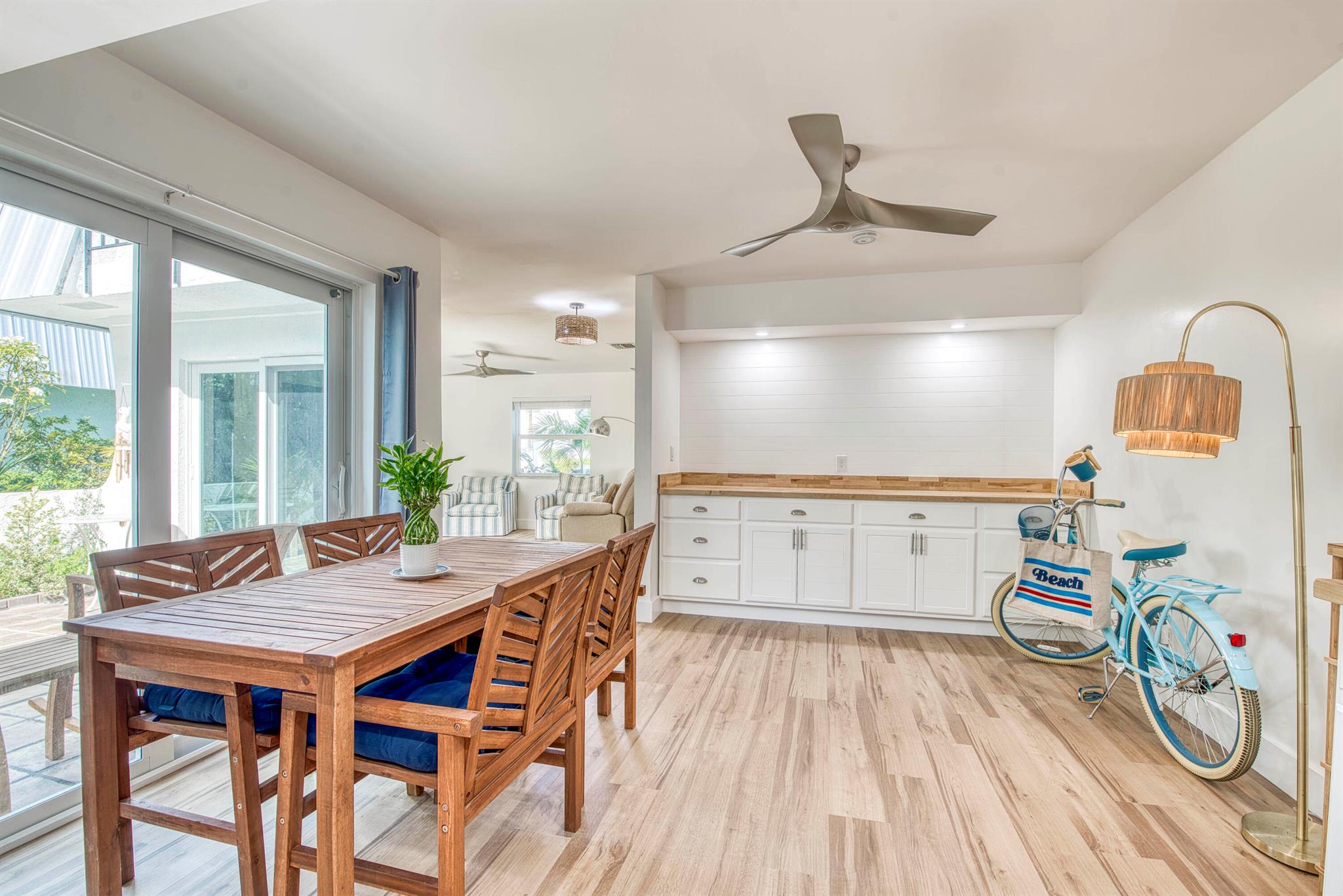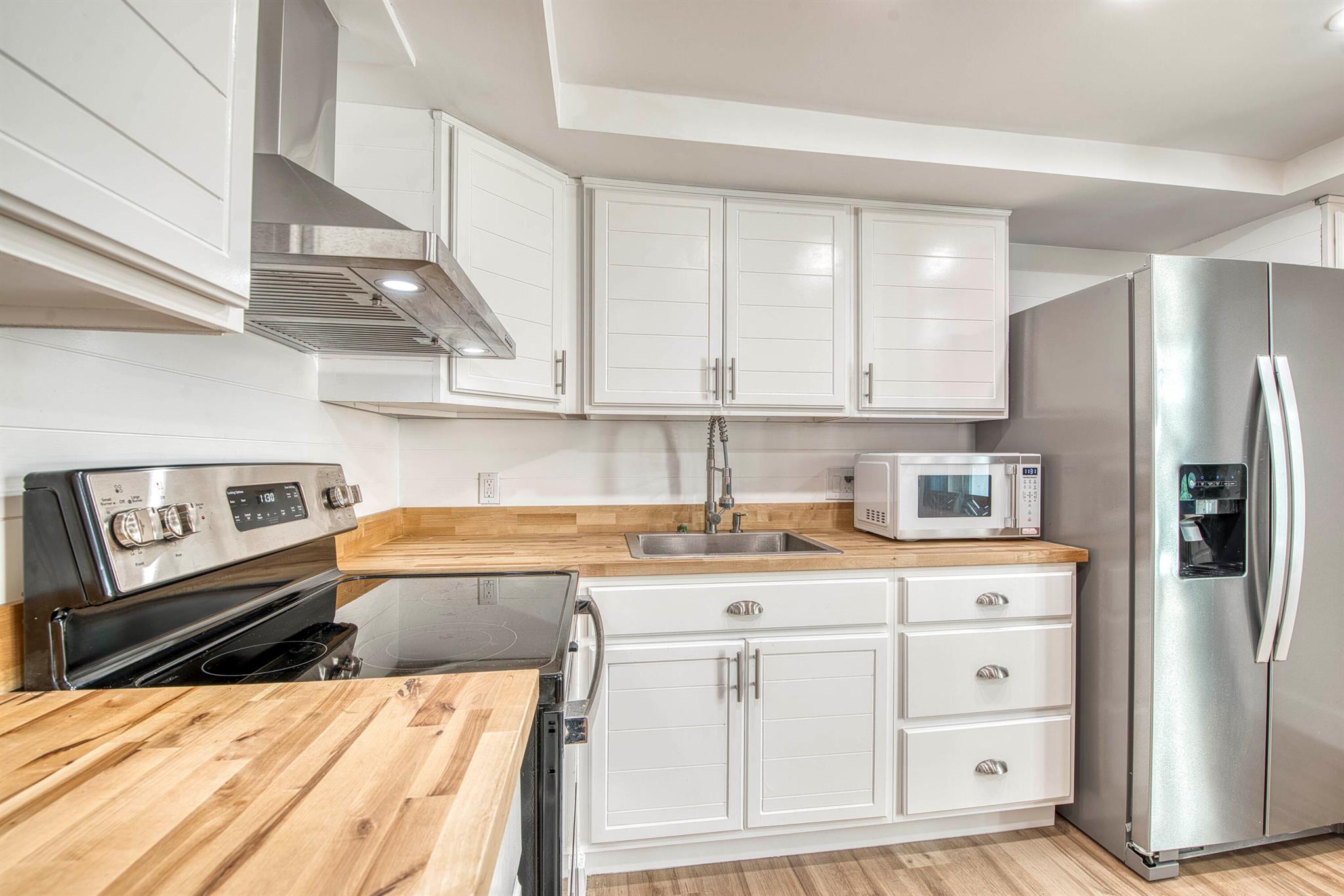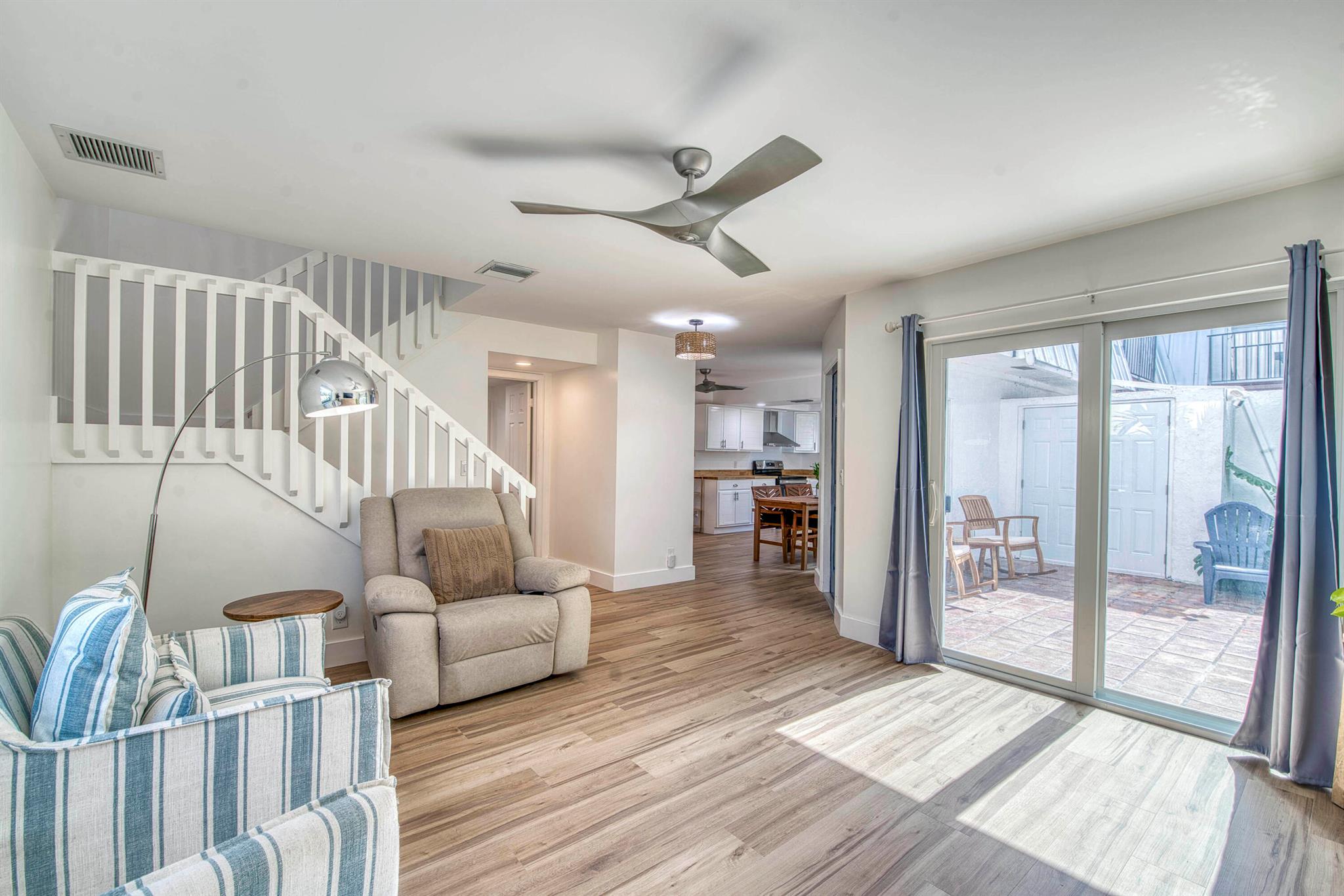 Mere steps from the ocean and beach access, this beautifully renovated Palm Beach Shores condo captures the essence of coastal living. Recently updated from top to bottom, the residence features a 2022 metal roof, all CGI impact windows and sliders, brand new washer/dryer, brand new refrigerator, and a brand-new A/C unit (Sept 2025) with a 10 year guarantee included for comfort and peace of mind. Inside, enjoy new wood-look flooring throughout, updated bathroom vanities, and a bright kitchen with white cabinetry and butcher-block countertops that complement the beach-inspired decor. The spacious living room overlooks a lush butterfly garden and a romantic Spanish-style patio, offering a serene setting for morning coffee or evening gatherings. This home is perfectly designed for both