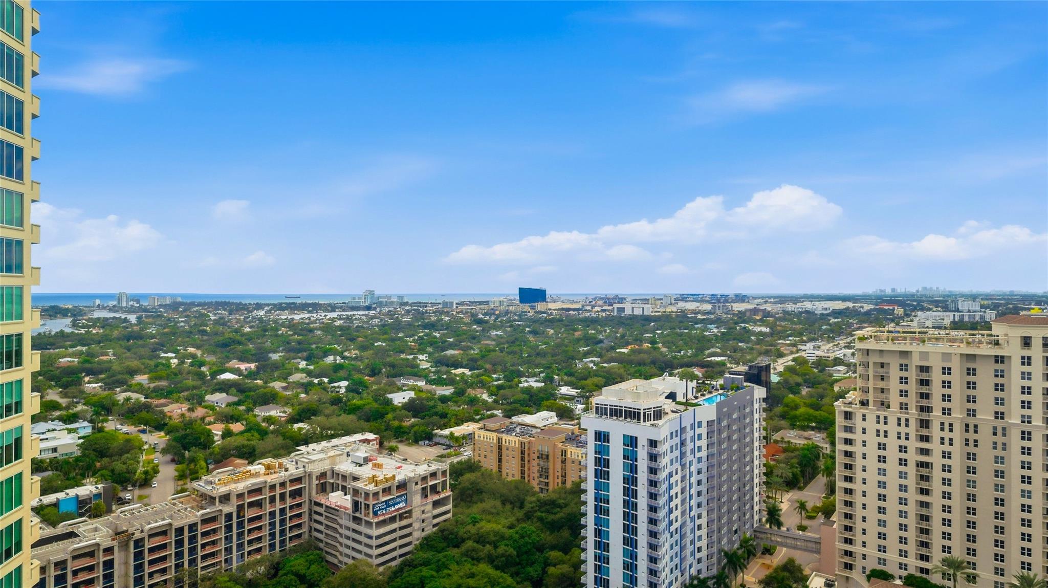 Most desirable stack in the building! Perched high above the city, this stunning sub-penthouse captures sweeping, unobstructed views of the ocean and river a rare fusion of natural beauty and urban luxury. Expansive glass walls fill the space with light, while open plan living flows seamlessly to generous terraces perfect for entertaining or quiet reflection. The elegant interiors feature 10 ft high ceilings, premium finishes, and a designer kitchen. Wake up with direct ocean views and unwind with golden river sunsets and city lights all from your wraparound balcony. Residents enjoy access to premium amenities including a resort-style pool, gym, and 24-hour concierge. Walking distance to finest dining, shopping, and nightlife in downtown Fort Lauderdale. New Hvac installed in 2023