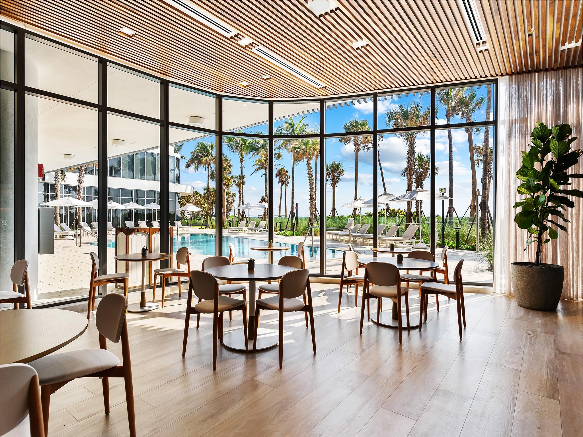 Feel the ocean from every angle open the east terraces to hear the waves, breathe salty air. This residence feels like a private beachfront retreat where the outdoors blends with your living space. This furnished, like new southeast corner unit offers 2,600 sq. ft. of light filled interiors wrapped in floor to ceiling glass with private elevator entry. The split floor plan ensures privacy, the primary suite has direct ocean views and a large walk-in closet, while two bedrooms sit on the opposite side. A den suits a media room, office, or guest area. Just above sea level, the home surrounds you with the calming soundtrack of the shore. Amenities include private beach, two pools, a fitness center with spa, sauna, and yoga studio, plus a coffee lounge, theater, wine room, club room.