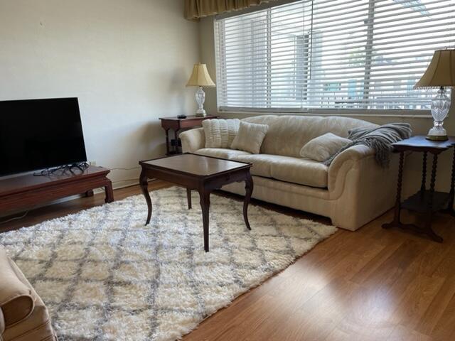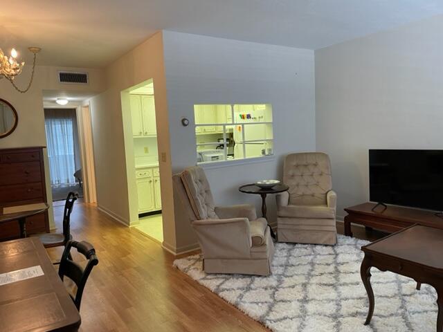 1/1 unit on 2nd floor, near stairs. View to Lake Osborne from balcony/Florida room. Laminate floors. Well-kept unit. Low maintenance fee includes Wi-Fi internet and cable. This unit will qualify 25% down mortgage for 30 years term. Great deal and move in before Holidays! Murry Hills is desirable 55+ community close to Lake Osborne.