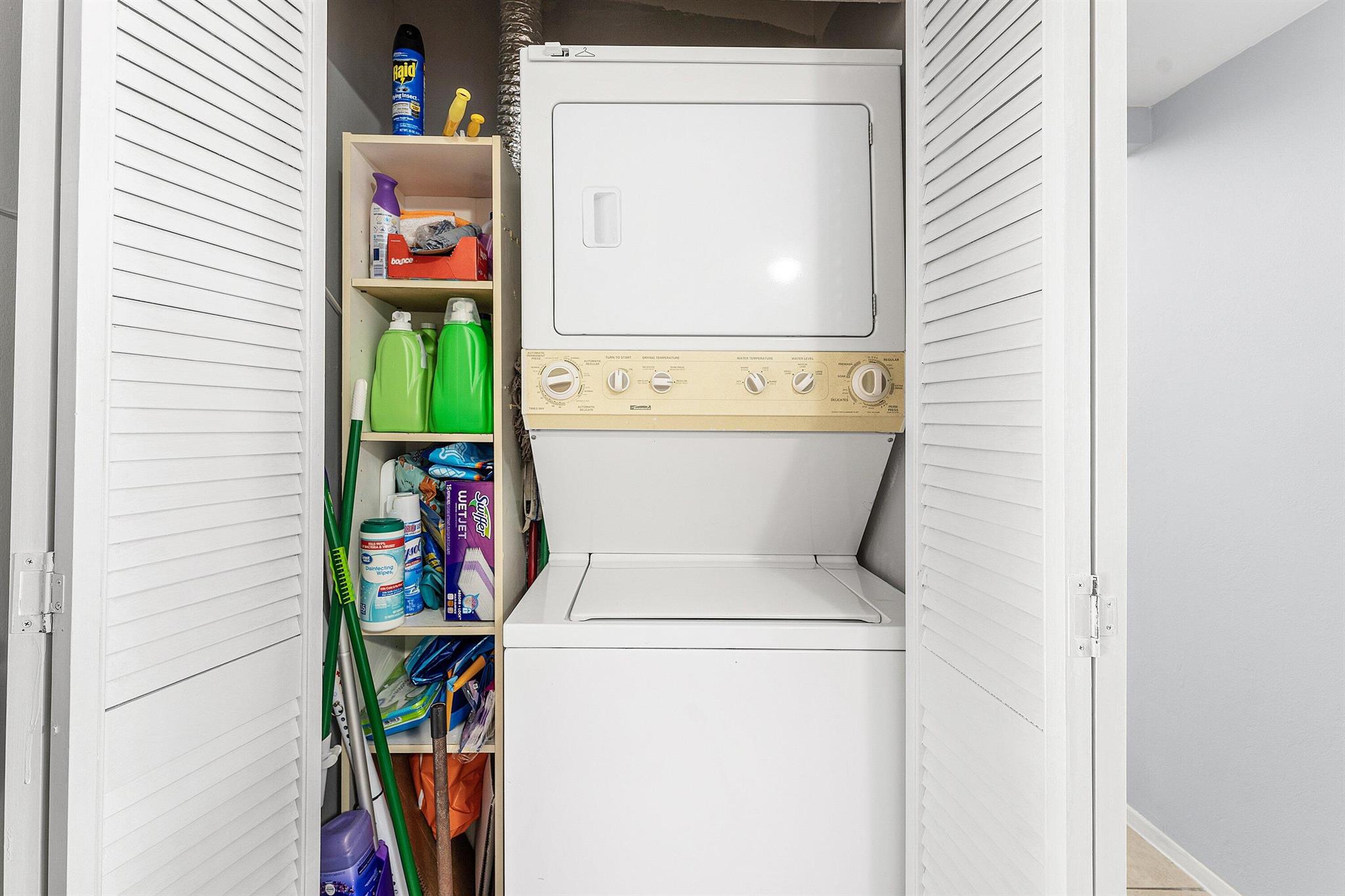 Move-in ready, nicely updated 2bed/2bath top-floor condo with a lake view from each room. Very light and bright condo. Spacious primary bedroom and walk-in closet. Private washer and dryer inside the unit. Pop-corn ceiling removed. Freshly painted. New tankless waterheater, brand new AC. Separate extra storage unit. Located in an active 55+ guard-gated community. The HOA fee ($548/month) includes: cable & internet, water, building insurance, lawn care, pest control, 24h guard gate, several pools, billiard, and so much more. Easy to show, call for details today!