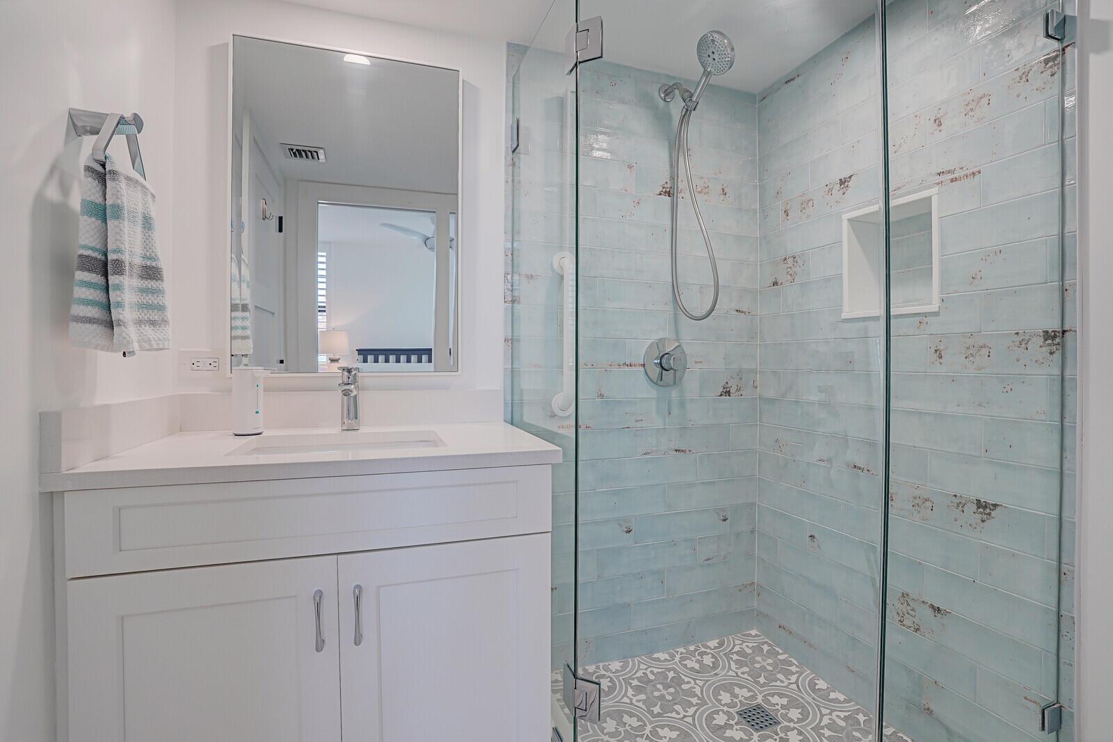 Enjoy ocean views from this fully renovated 3-bedroom, corner unit condo in the heart of Juno Beach. The open, modern floor plan highlights a stunning custom kitchen with a large island, quartz countertops and stainless steel appliances, complemented by herringbone wood-look tile flooring throughout. Spa-inspired bathrooms feature frameless glass showers and premium finishes. Completely remodeled -- no renovations or projects, just move in and enjoy the beach lifestyle. The monthly fee includes building insurance, exterior maintenance, cable, water and reserves, offering exceptional value and a rare opportunity to secure a beautifully updated unit at a strong price point within the building. Walk to the sand, pier, restaurants and cafes -- the best of Juno Beach is right outside your door.