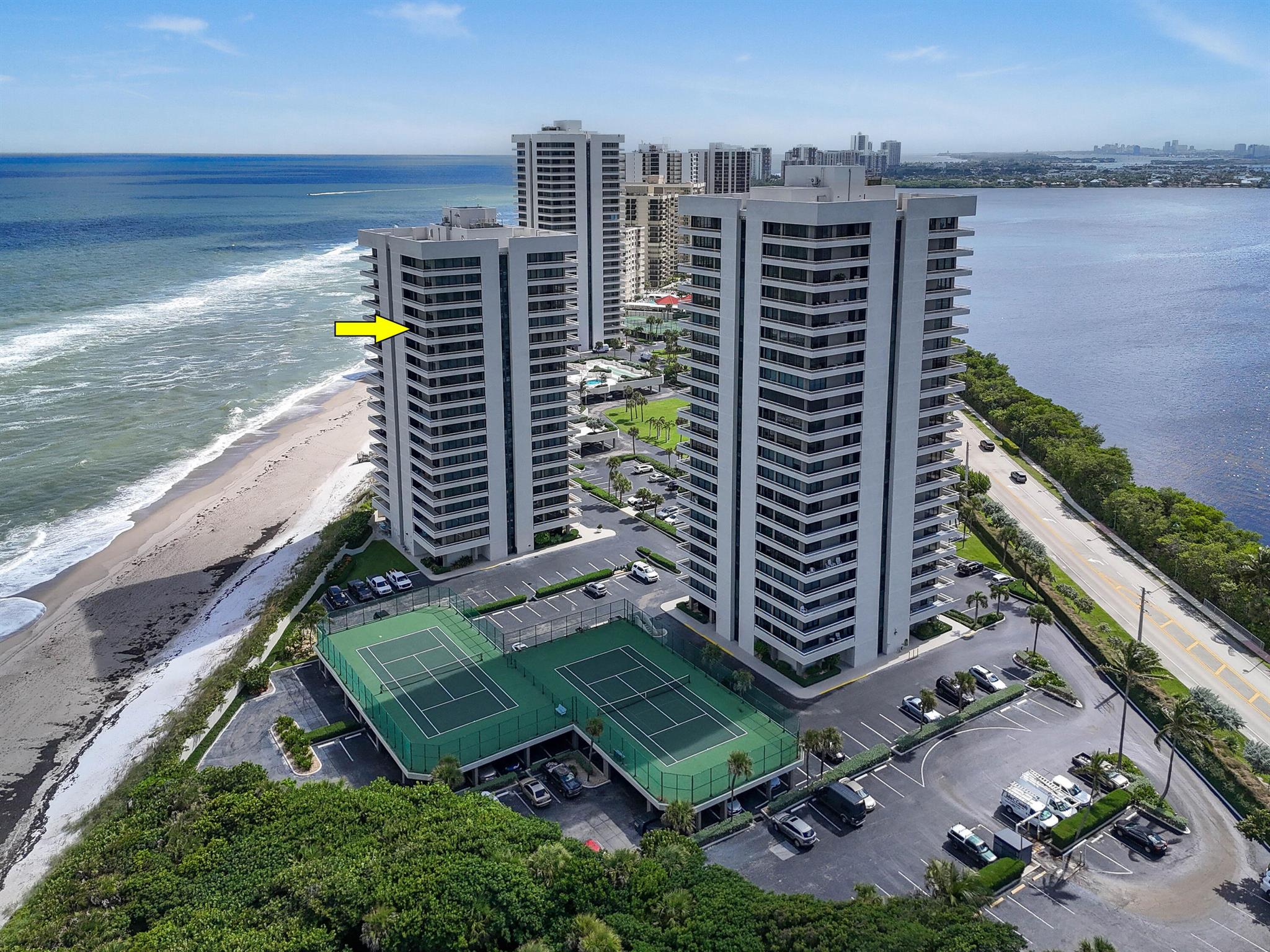 Magnificent panoramic ocean view on Singer Island. The wrap-around balcony adds views of MacArthur State Park and Florida's Intracoastal Waterway.2 bedroom/2 baths. Beautiful, newly remodeled kitchen and great room. Liebherr, Asko, and Miele appliances. All impact hurricane windows. Private beach, covered parking, additional storage unit downstairs, 2 pools, 4 tennis courts, shuffleboard, putting free, fitness center, and a new clubhouse, 24-hour manned security. 20 minutes to the PBI airport and downtown West Palm Beach, Spectacular unit for full-time or seasonal residents.