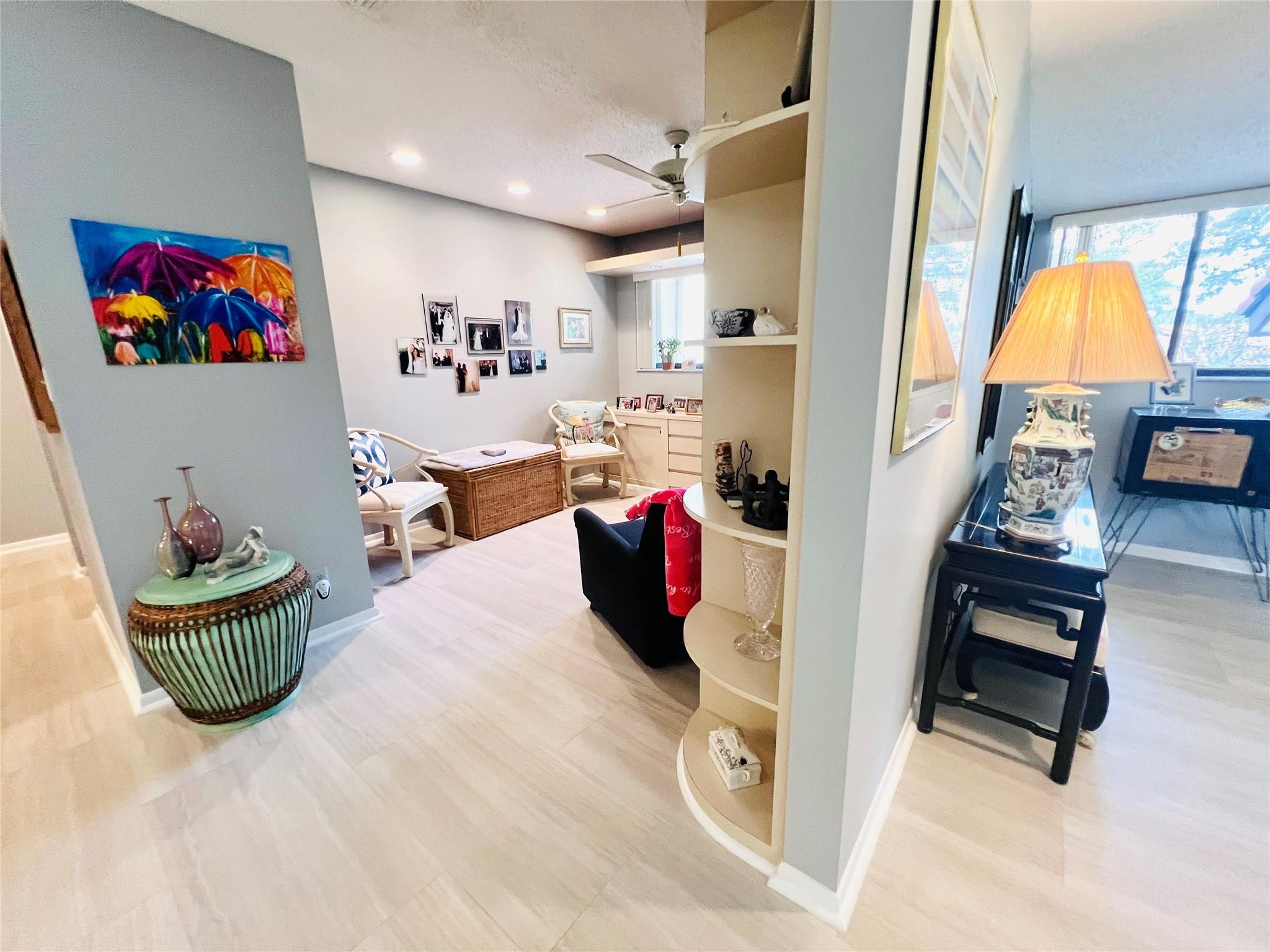 Bright and Open 2nd Floor 2-Bedroom, 2-Bathroom Condo with an added Den/Office/potential 3rd Bedroom and Large, Enclosed Air-Conditioned Lanai. GORGEOUS and PEACEFUL Water Views! Updated Luxury Vinyl Plank Flooring throughout. Warm & Welcoming Unit with Over 1700 sf of Living Area Under Air. New Microwave & 2-Year Old Dryer. Updated Electrical Panel. Accordion Shutters Throughout for Easy Hurricane Prep. Built-ins Create Extra Storage and a Convenient Murphy Bed with New Mattress is in the 2nd Bedroom for Guests. Most Furniture is Included! Quick Closing if Desired. Palm Chase is a Desirable Community Nestled Behind a Church/Seminary 1/4 Mile from the Street to a Gated entrance. Amenities include a Temperature Controlled Pool, Tennis, Pickleball, Hot tub, Sauna, Fitness Rooms & More!