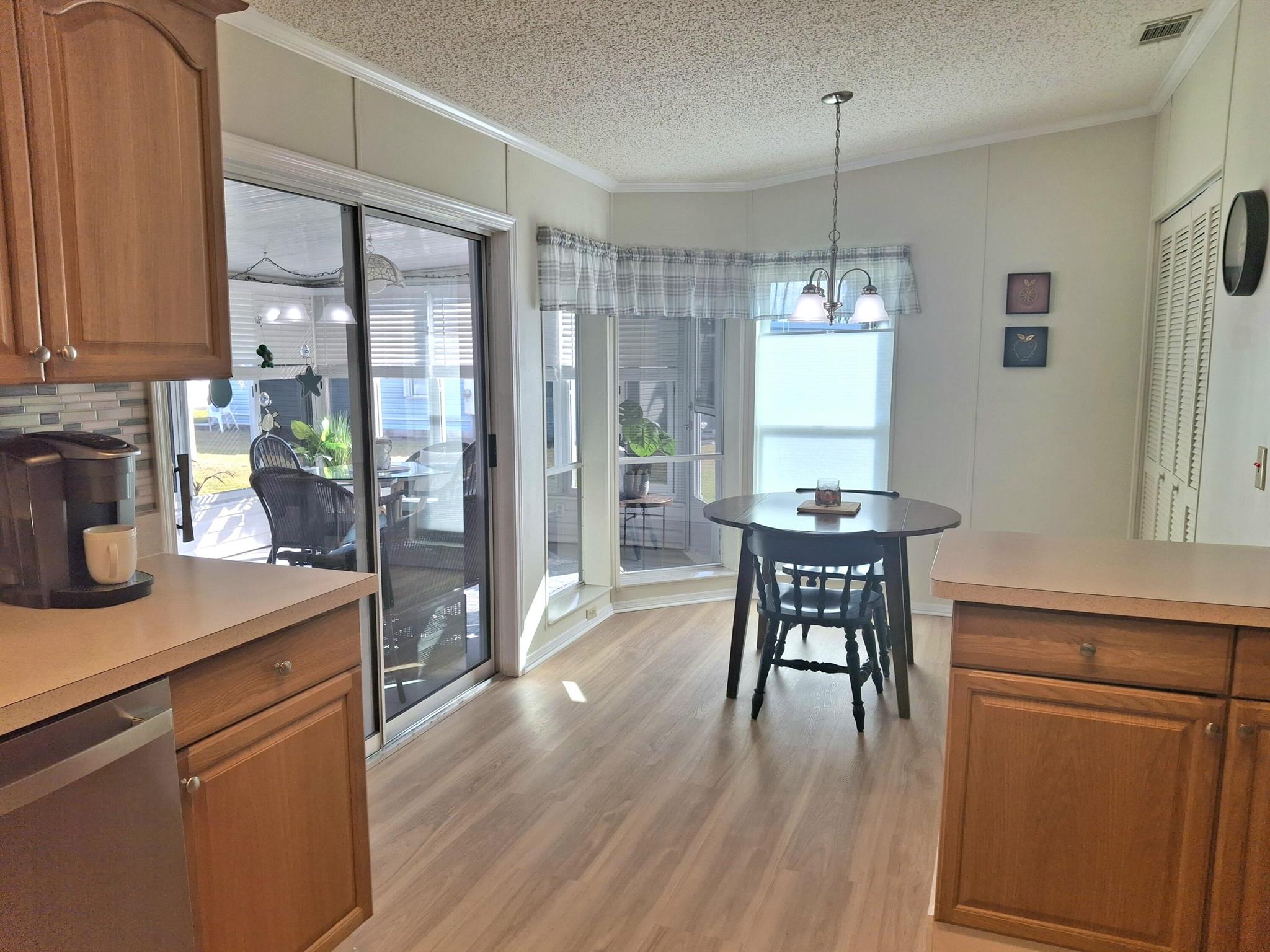 RARE Land-owned 3 bedroom, 2 bath home. Immaculate and move-in ready! Located just steps from a clubhouse, pool, on-site restaurant, golf shop & exercise room. This home offers exceptional convenience and value. Recent updates include a 2020 roof, impact windows, new LVP flooring (2024), new refrigerator (2024), and new toilets and vanities (2024). The dishwasher was replaced in 2025 and fridge (2024). The open, spacious layout includes French doors, a formal dining room, and a separate dinette off the kitchen. Enjoy the Florida lifestyle on the large lanai or the open patio. Perfect for grilling and entertaining. A land-owned 3-bedroom home in such close proximity to major amenities is truly hard to find--and will not last long! Come see how affordable Savanna Club is!