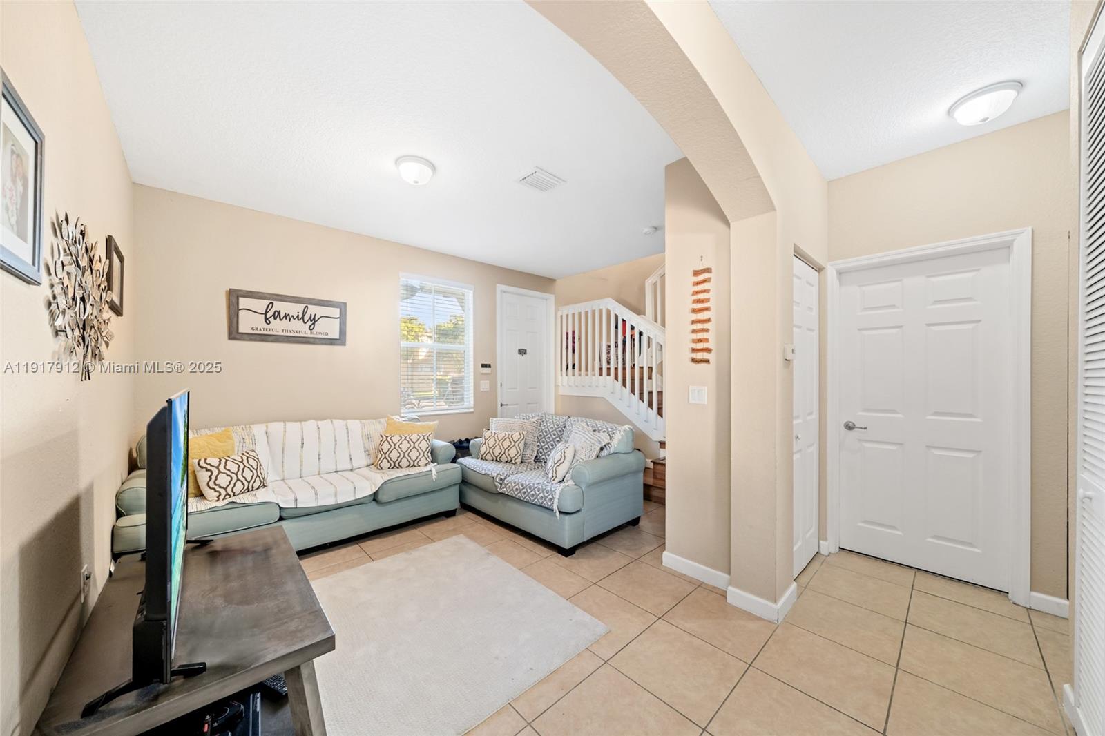 Bright and move-in-ready two-story townhouse in a secure gated community, offering a warm and inviting layout ideal for comfortable everyday living. The spacious first floor features tile flooring throughout, a bright living room with large windows, and an open dining area that flows seamlessly into the kitchen. The kitchen includes white cabinets, ample counter space, pantry storage, and direct views of the fenced backyard through sliding glass doors—perfect for gatherings and indoor-outdoor living. Upstairs, the wood-like laminate flooring creates a cozy atmosphere, and all three bedrooms offer generous space, natural light, and neutral tones to accommodate any style. The home also includes an in-unit washer/dryer and additional storage closets for convenience. Residents enjoy resort-style amenities such as a sparkling pool, playground, and walking trails. Ideally located near Baptist Health Homestead Hospital, Homestead Air Reserve Base, shopping, dining, top-rated schools, the Turnpike, and the Florida Keys. Surrounded by growing development and major employers, this community offers strong long-term value. A great opportunity for families, investors, or first-time buyers.