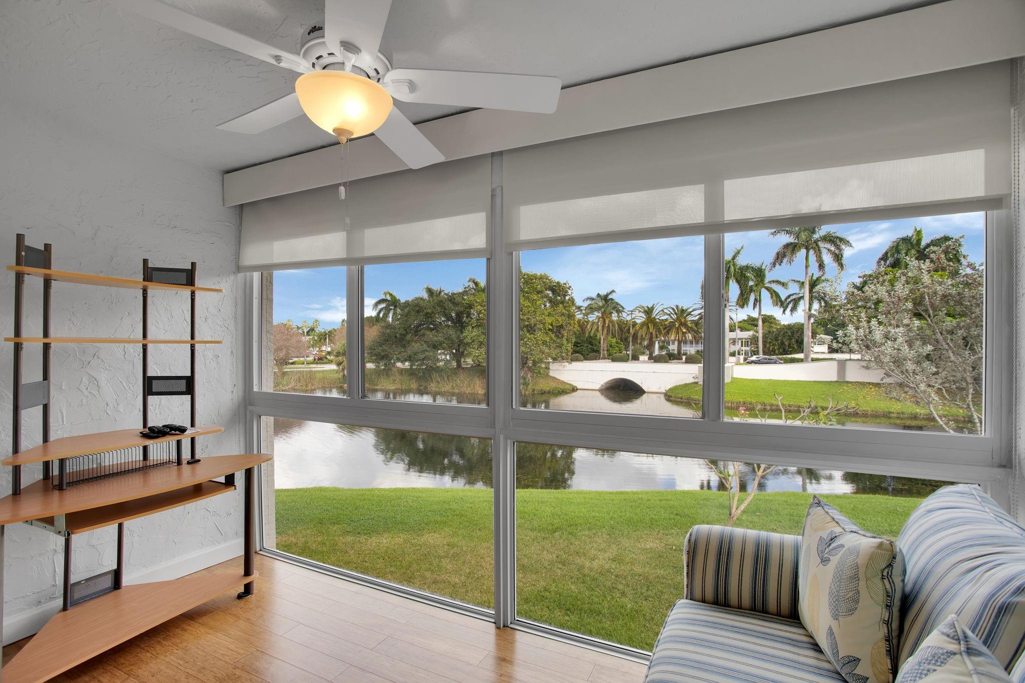 CORNER This property features all high-impact windows and a glass-enclosed patio that opens to the living area. Surrounded by water on every side, the patio faces east. The interior has been remodeled, with no carpet; laminate /vinyl flooring throughout. The kitchen and living room boast granite countertops and recessed lighting (hi-hats), SS Appliances, while all windows are fitted with plantation shutters. Be sure to see all the photos, then come see it for yourself!