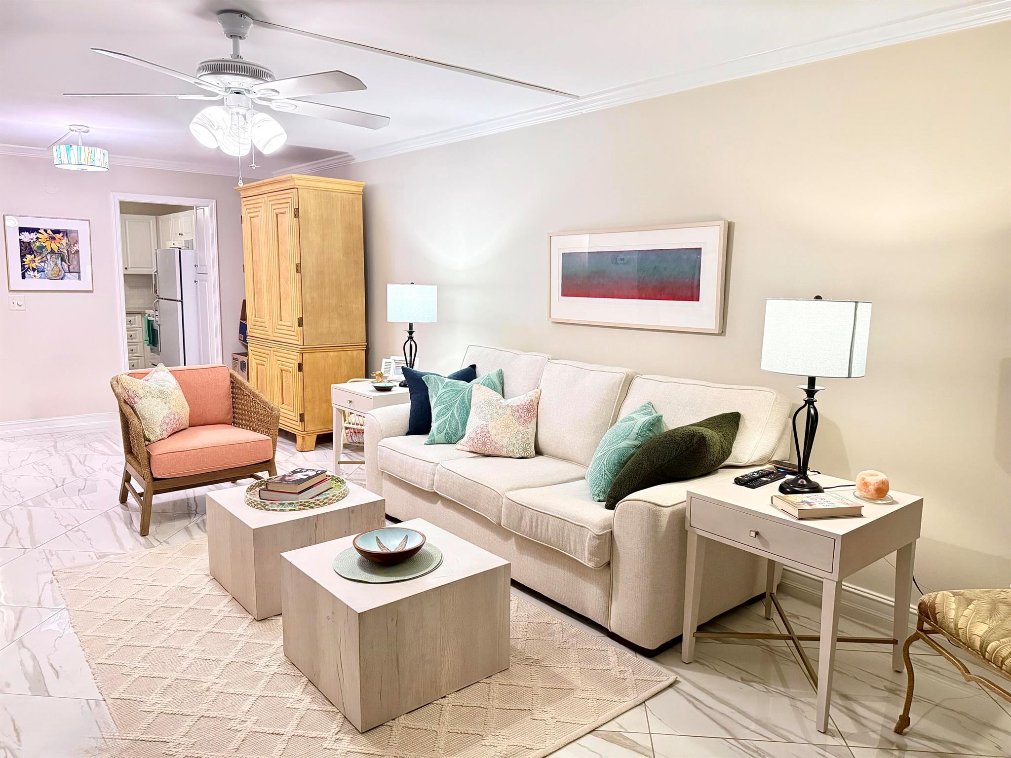 A tranquil setting and superb location makes this an ideal retreat to call home!Live the active East Boca lifestyle in the charming, tropical waterfront enclave of French Village in the heart of everything wonderful and only minutes to the beach.Move right into this bright and airy, beautifully-maintained, 854 SF condo with all impact glass windows & doors, brand new hurricane front door with side light, porcelain-marble floors throughout, brand new a/c, new shower in master, new kitchen countertops & backsplash, sink and faucet, and a new electrical panel up to the new codes -- a real plus!Enjoy a spacious, heated saltwater pool and bar, serene outdoor gathering spaces for entertaining, picnic areas with BBQ's, easy walking paths, putting green and boat docks.