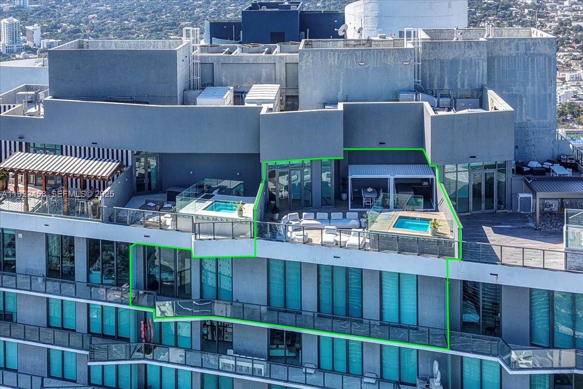A Rare Jem In The Sky! Absolutely Breathtaking 2-Story Upper Penthouse featuring a Private Rooftop Terrace with Jacuzzi and Panoramic Water Views. This fully furnished ultra-modern residence spans 4,100 Sq Ft (2,200 interior / 1,910 exterior) and boasts bespoke interiors by renowned Avanzato Design, where every detail reflects refined luxury and thoughtful functionality. The main level offers soaring vaulted ceilings, imported hexagon flooring, a private movie room (easily convertible to a fourth bedroom), high-end finishes, and a full smart-home system. A custom spiral staircase leads to your private rooftop retreat featuring a jacuzzi, built-in kitchen with electric grill, lounge seating, and stunning skyline and bay views — perfect for entertaining or unwinding in total privacy. Residents enjoy DUA’s 5-star amenities and a premier Brickell location within steps from fine dining, luxury shopping, and scenic bayfront walks. A Rare Jem In The Sky!