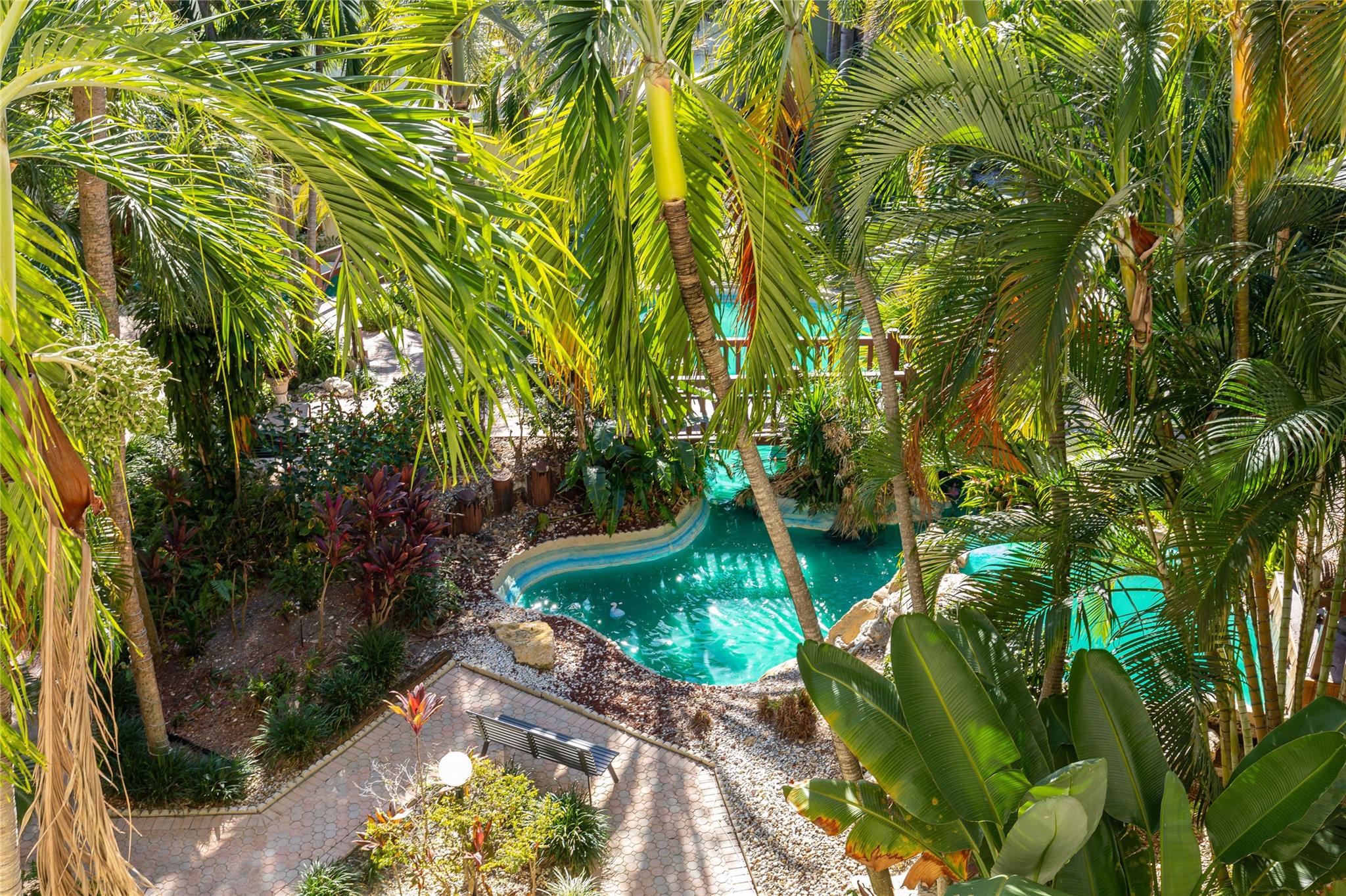 This light-filled 1 Bedroom/1.5 Bathroom condo features neutral travertine flooring, crown molding, and a spacious living/dining area with peaceful palm-tree views. The updated kitchen offers granite counters, stainless steel appliances, and warm wood cabinetry. Updated bathroom with glass-enclosed tub/shower. Enjoy morning coffee from your screened balcony. The Resort style community has a tropical lagoon, pool, hot tub, fitness room, recreation room, lush walking paths, and multiple seating areas. Just 1.5 miles to the beach, surrounded by dining, shopping, and all that East Fort Lauderdale offers. Move-in ready and perfect for a primary residence or vacation retreat. Internet is also included in the monthly HOA dues and each unit has a storage cage. Plenty of guest parking on site.