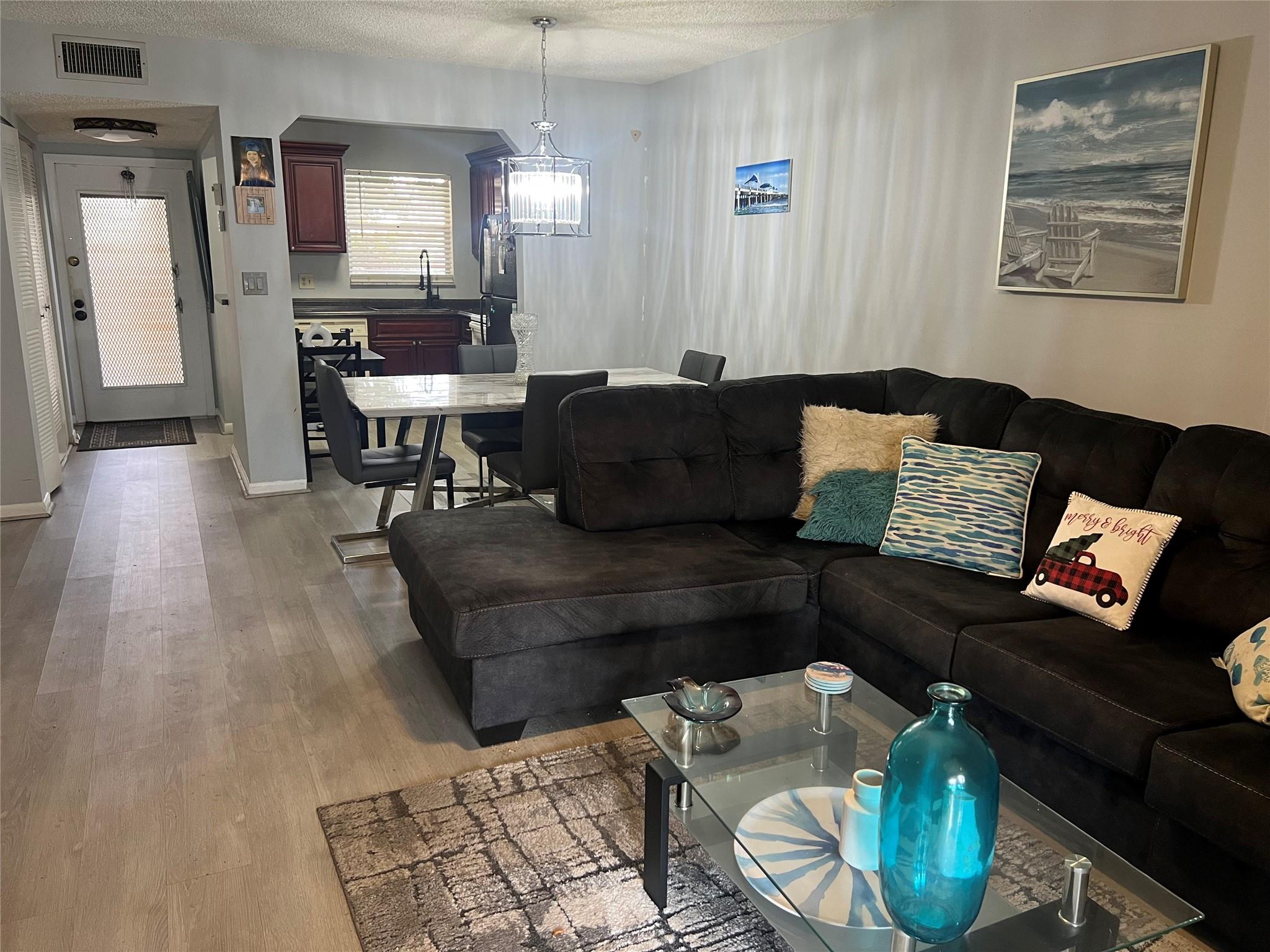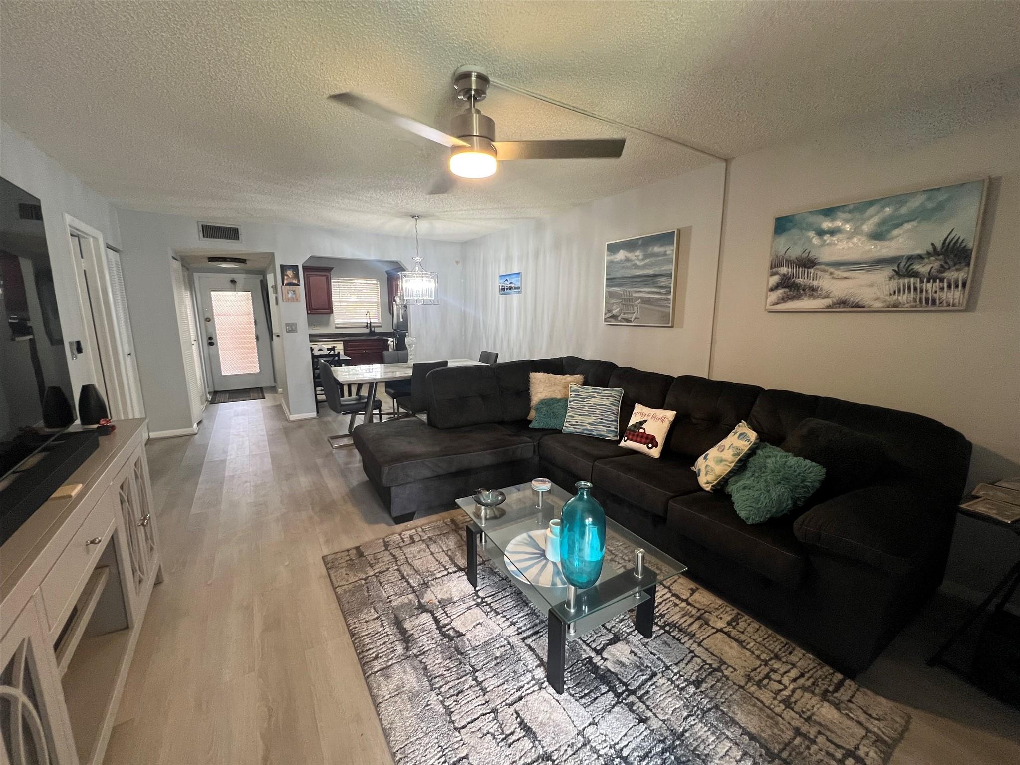 MUST SEE! Beautifully maintained waterfront 1B/1 and a half bathroom, ground floor unit with enclosed patio overlooking the water. Lovely, updated kitchen and wood laminate flooring throughout the living and bedroom area. Property features large double kitchen pantry, linen closet, large walk-in closet in the master bedroom, handicap equipped master shower and laundry Room a few doors down. This is a 55+ beautifully maintained community with amenities such as a recently renovated clubhouse equipped with a full kitchen, 3 heated pools, gym, spa, sauna, community room, tennis, covered picnic/barbeque area, bocce ball court, etc. Community is convenient to shopping, restaurants and grocery stores.