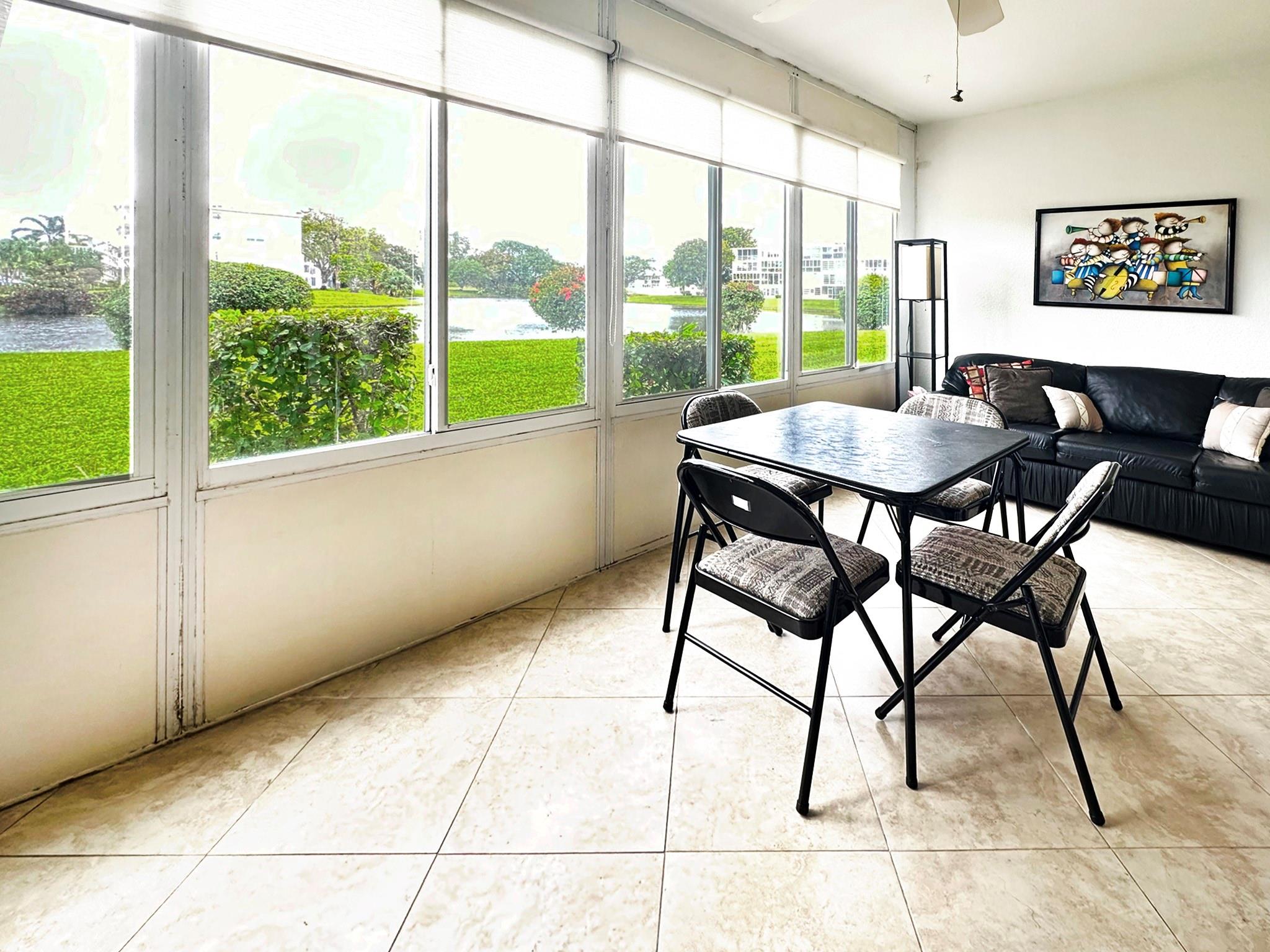 Fabulous location! GORGEOUS water view from this ground flr TURNKEY condo w/1 bdrm & 2 FULL BATHS w/convenient pkg. rt in front! Many upgrades incl a beautiful open kit w/granite cntrs & backsplash, ss appl, under-cab & recess ltg, crown molding & tile floors thru-out. Both bathrooms have been updated w/granite vanities, tiled walls, & walk-in shower stalls. Enjoy a lovely view of the lake from the encl patio w/sliding glass windows. Nicely furnished w/ a new KING bed & leather couches in liv rm!! Gated community, 24 hr sec, free bus service, pools, tennis, pickle ball, putting green, cafe, shuffleboard, State-of-the-Art Clubhouse w/gym, sauna, indr & outdr pools, billiards, classes, clubs & more! Close to great restaurants, shopping, highways & JUST MIN TO THE BEACH! ASSOC CLAIMS 55+