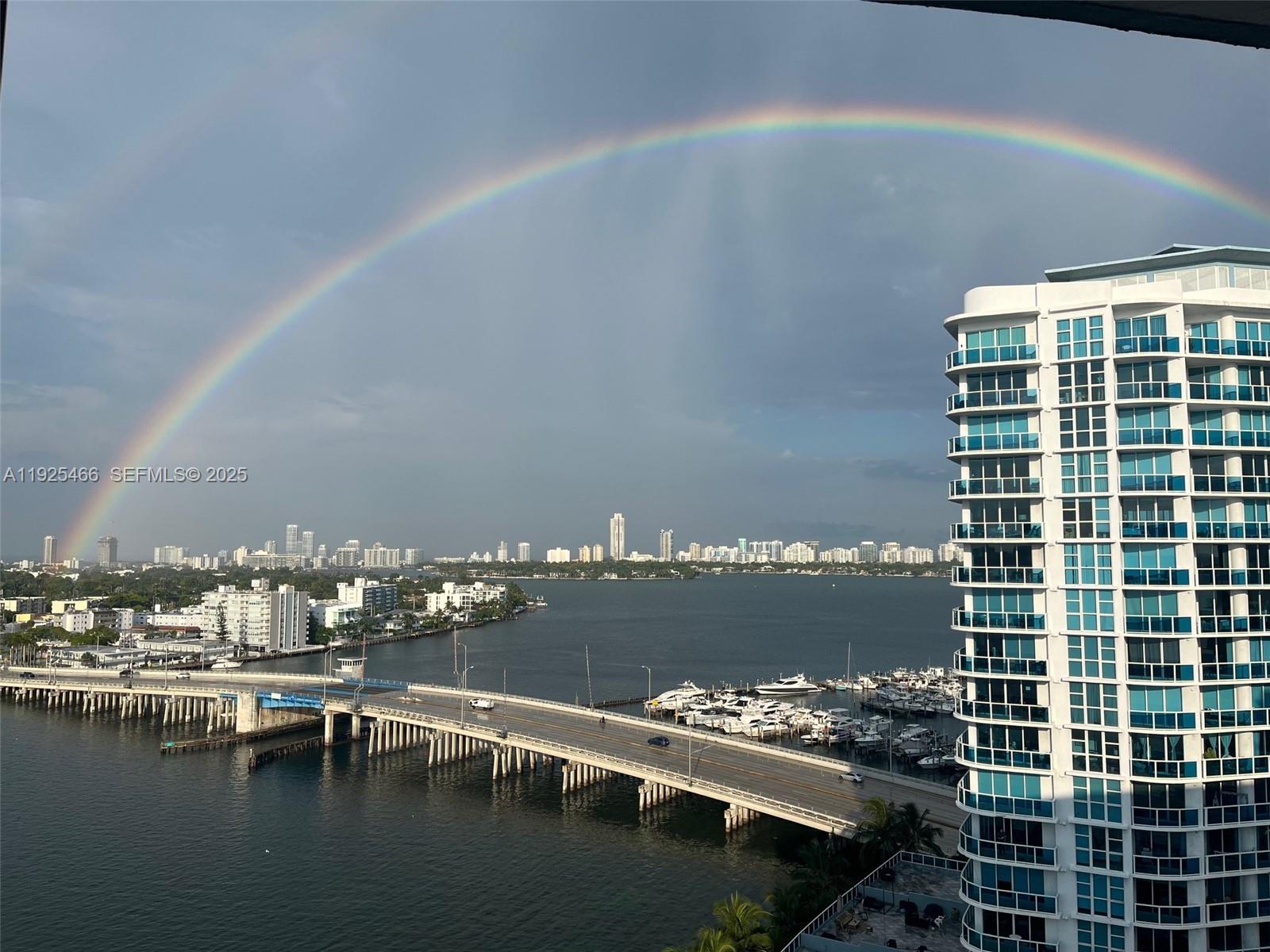 Absolutely breathtaking 1 bed / 1.5 bath penthouse corner unit with soaring ceilings and 1,057 sq ft of sun-drenched interiors. Perched atop North Bay Village’s skyline, this top-floor sanctuary captures sweeping, unobstructed bay views—even across to Jeff Bezos’ residence. Bright open layout, elegant wood flooring, updated kitchen with newer appliances, and brand-new A/C. Full-service waterfront building with pool, fitness center, and more. Includes one assigned parking space. Just 10 minutes from Miami Beach, Bal Harbour, and Midtown. Live above it all—where the skyline meets the sea and every sunset feels like a private showing.
