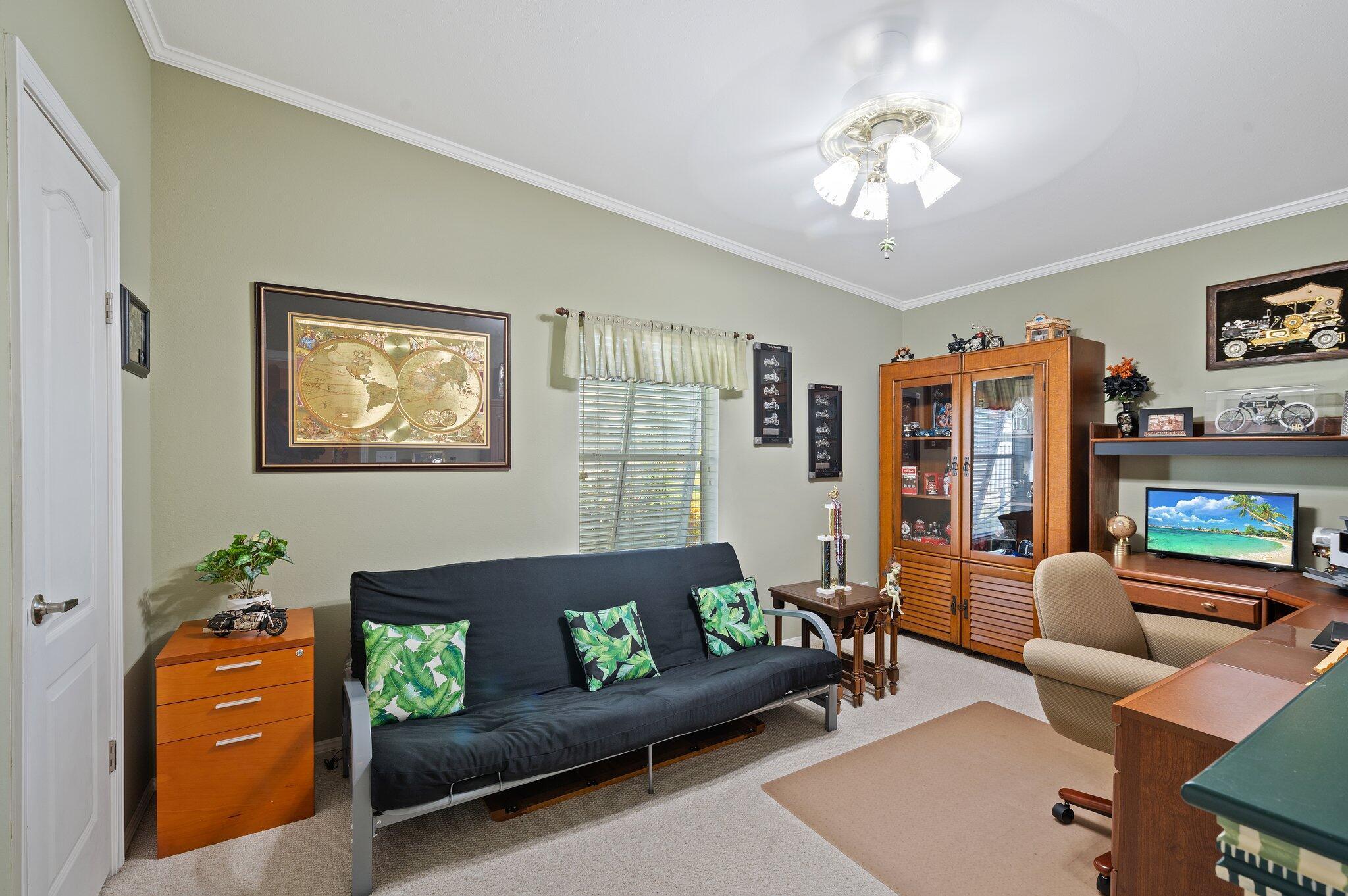 Charming Home in Prime Cul-de-Sac Location. Home is ideally situated at the end of a quiet cul-de-sac. Built with quality drywall construction and featuring elegant crown molding, it offers a spacious, raised enclosed patio with wall-to-wall windows. A top of the line Palm Harbor Home. Recent updates include a newer A/C unit, water heater, new stainless steel dishwasher, kitchen faucet, and dryer. The thoughtfully designed split floor plan features generously sized bedrooms throughout. The kitchen boasts white cabinetry, ample counter space, a large walk-in pantry with floor-to-ceiling shelving, and a cozy eat-in area. Adjacent to the kitchen is indoor laundry equipped with abundant shelving. The formal dining room includes a built-in buffet. The living room features vaulted ceilings
