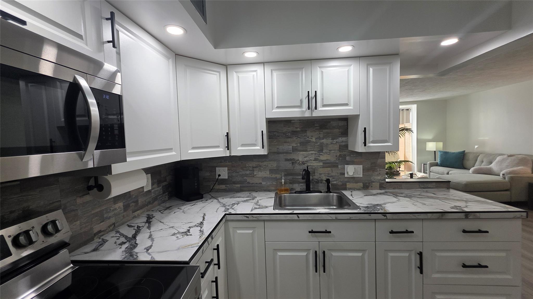 Completely updated, spacious 1-bedroom, 1-bath corner unit on the first floor. This bright condo features an open, modern kitchen with white cabinetry, stainless steel appliances, tile backsplash, porcelain countertops, and a large pantry for extra storage. The updated bathroom, tile and waterproof flooring throughout, new lighting, and ceiling fans add to the move-in-ready appeal. Fully furnished with brand-new modern furniture (2023). Water heater (2019) and A/C (2019). Enjoy abundant natural light and a Florida room with impact windows overlooking relaxing garden views. Ideally located next to the pool, amenities, and clubhouse in Building B. Well-managed and well-maintained building within Somerset Phase 2, an active 55+ gated community offering numerous activities and amenities.