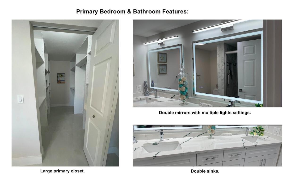 • Interior Feature:BreakfastBar, BuiltInFeatures, DualSinks, EatInKitchen, LivingDiningRoom, CustomMirrors, Pantry, SeparateShower, WalkInClosets