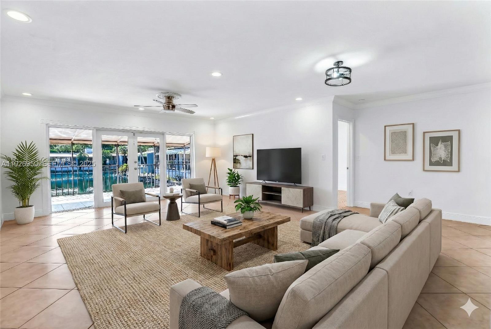 Hurricane Impact windows/doors! Brand new AC! Welcome to this inviting 3-bedroom, 2-bath corner villa offering comfort, style, and serene water views. Freshly painted throughout, the bright and airy kitchen features white cabinetry and stainless steel appliances and opens to a spacious living area filled with natural light and beautiful water views. The generous primary suite includes a walk-in closet and elegant French doors leading to a large private patio — perfect for relaxing or entertaining while enjoying the peaceful surroundings. All bedrooms are very spacious, with a well-sized second & third bedroom and full bath providing added flexibility for guests, an office, or hobby space. Additional highlights include an oversized covered patio that extends your living space outdoors. This cozy villa offers the perfect blend of comfort, charm, and tranquil waterfront living. 3 assigned parking spots & super low HOA fee!