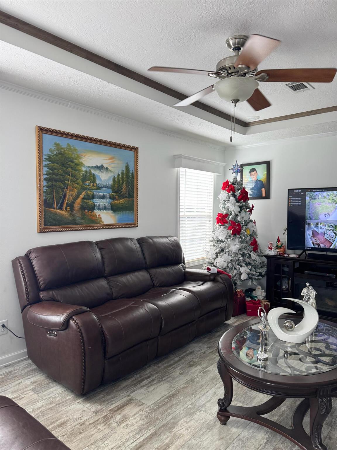 Charming Mobile Home in a community for all ages in Lake Worth Village! Beautiful and comfortable 3 bedrooms and 2 bathrooms, with elegant tray ceilings with wood accents, recessed lighting, and luxury laminate flooring, a private retreat with a double vanity spa-style bathroom, spacious covered front porch for relaxing, and private carport.Don't miss out!. All measurements are approximate. Call the listing agent to schedule a showing.