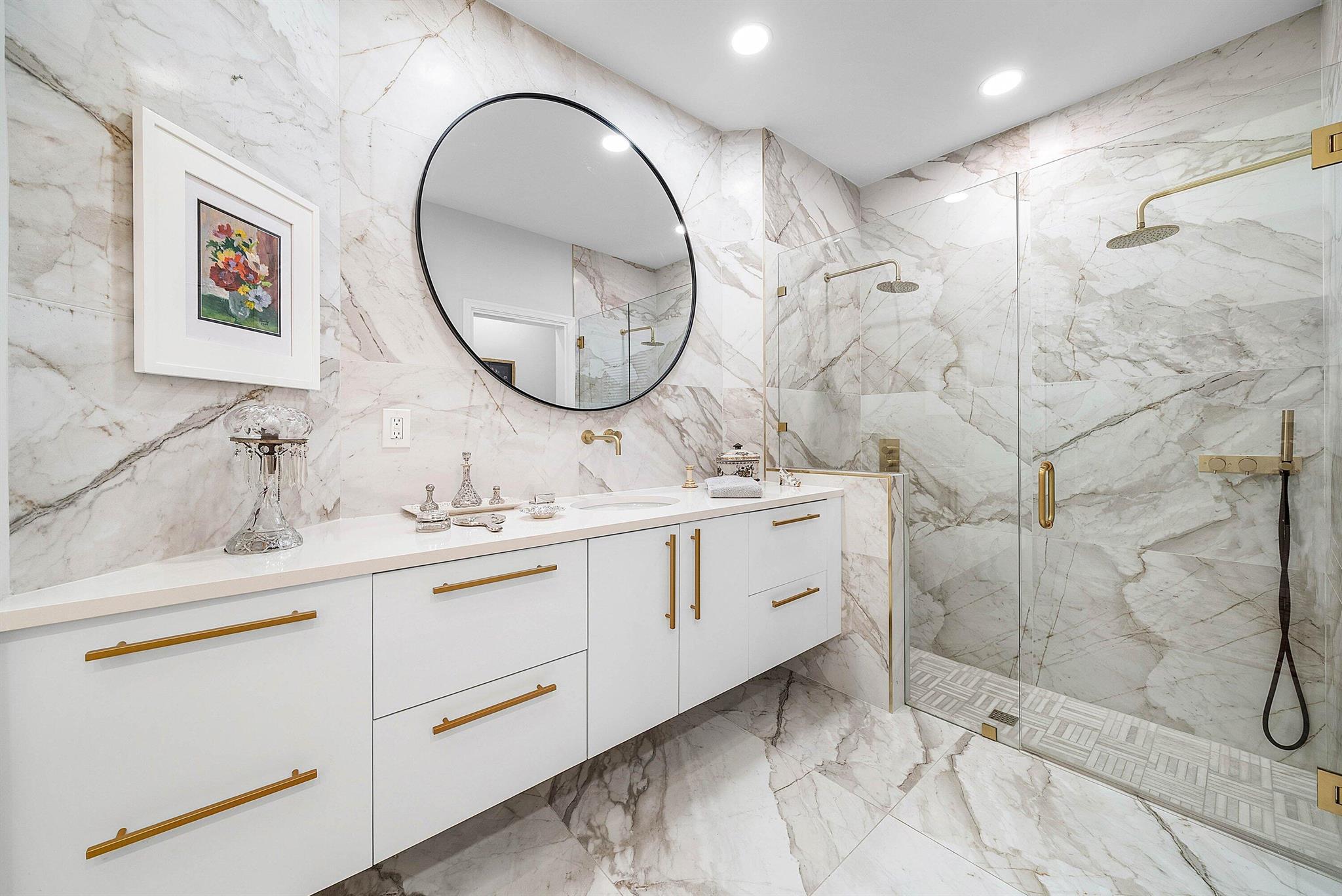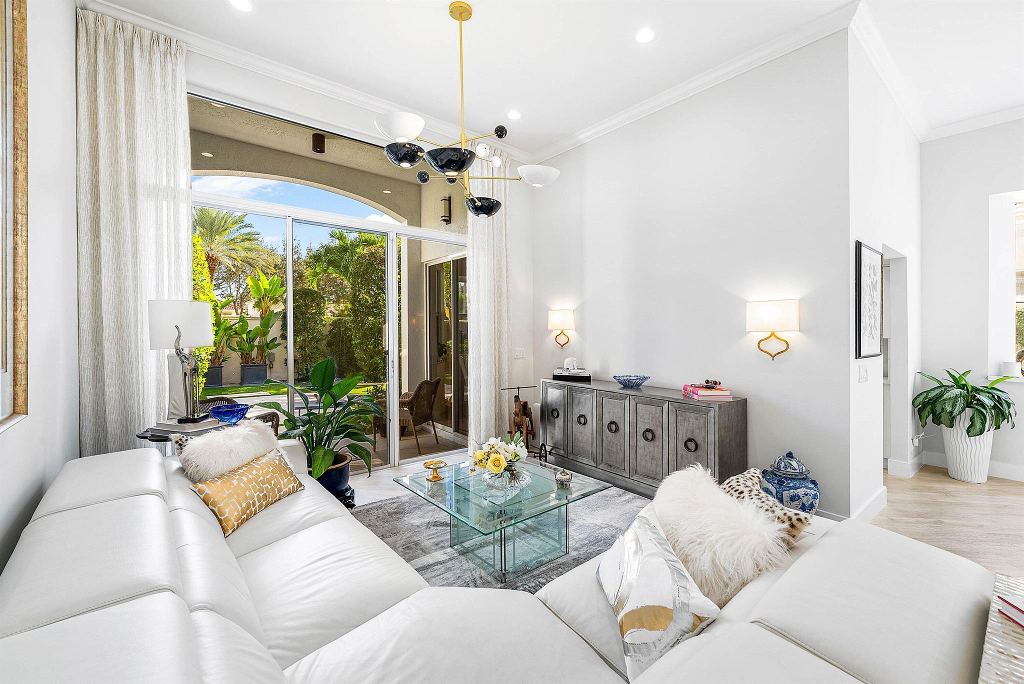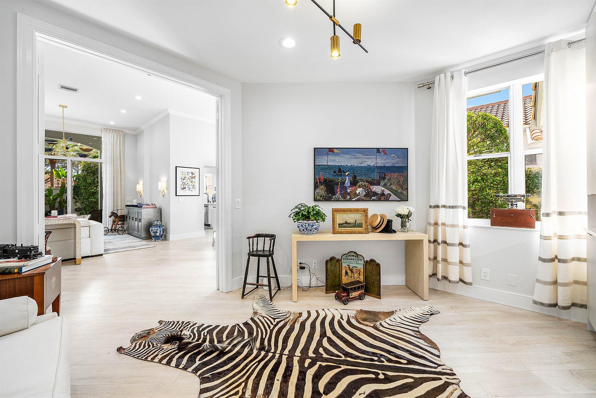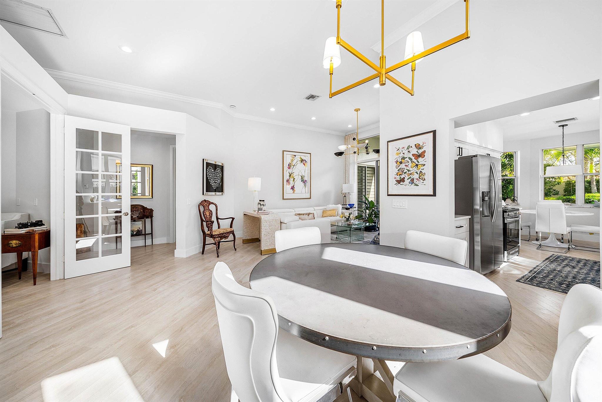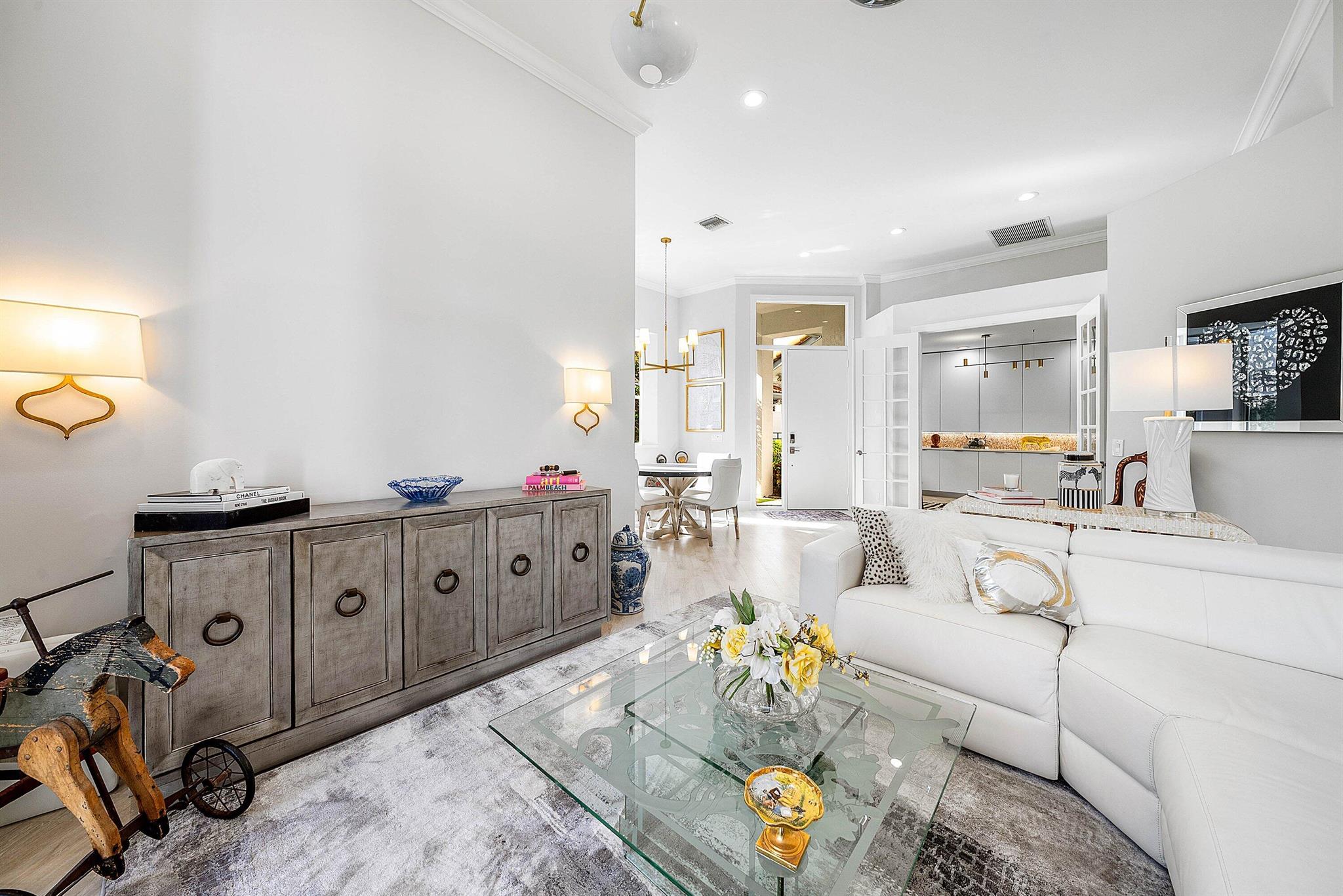 Located in Broken Sound's beautiful village of Timbermill, this lavish 3-bedroom, 2-bath townhome blends contemporary design with refined luxury. Sophistication greets you upon entering the private gate, revealing smooth walls and soaring vaulted ceilings. The modern kitchen showcases quartz countertops, soft-close cabinetry and drawers, and a sunlit breakfast area. The luxurious primary suite offers a generous walk-in closet and a spa-inspired bath with marble tile, floating vanity, frameless shower, and elegant gold finishes. A professionally designed third bedroom has been transformed into the ultimate office, featuring custom cabinetry and a mother-of-pearl backsplash. Enjoy breathtaking sunrises from the east-facing backyard, beautifully finished with espalier lattice, porcelain tile