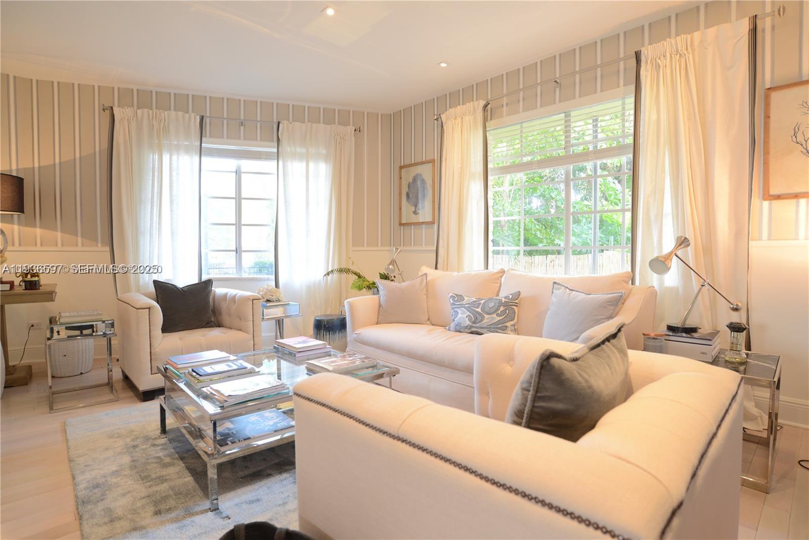 Completely renovated and furnished, corner apartment within the Gibson building. The apartment has undergone a complete renovation by a renowned architect and interior designer, featuring a large living area overlooking the building's internal garden, a formal dining area, a kitchen, a large bedroom with walk-in closet and bathroom with shower, all furnished with meticulous attention to detail. The unit features hurricane-resistant windows and doors. The renovation was not only aesthetic but also structural, reinforcing the entire floor and ceiling.