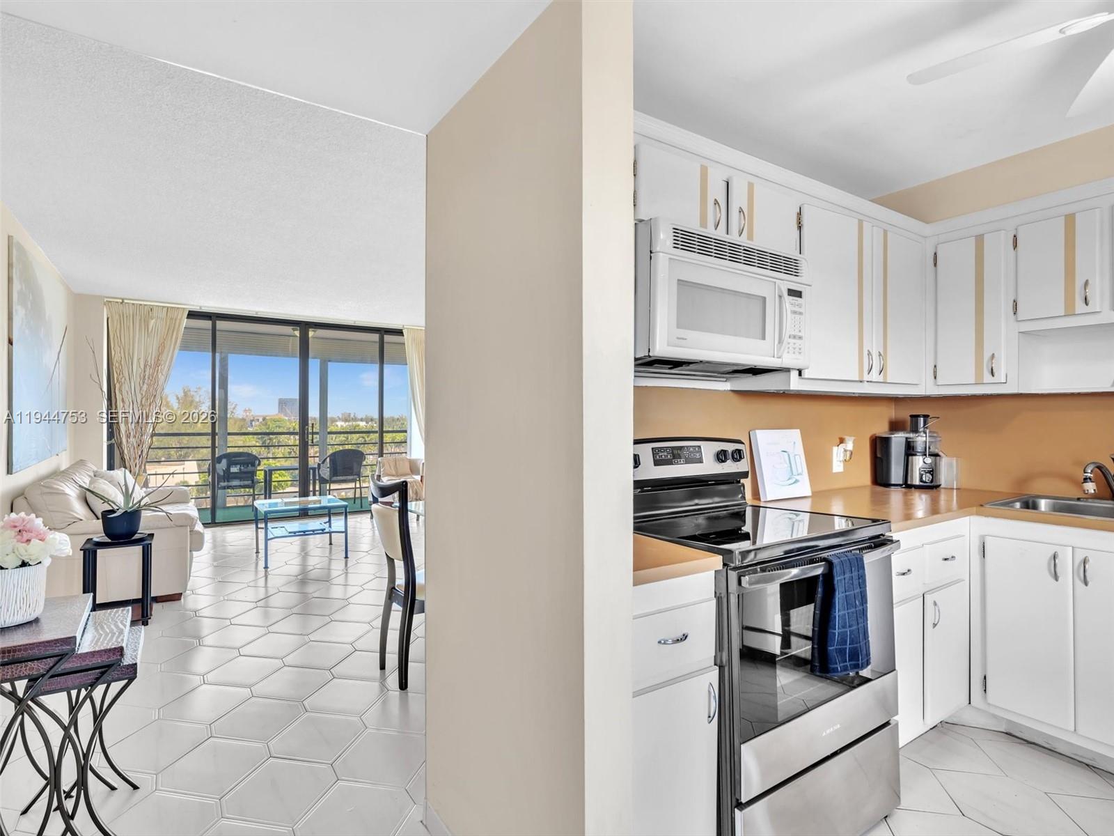 PRICE ADJUSTMENT! A GREAT OPPORTUNITY! JUST BRING YOUR BEACH GEAR! Come enjoy this fully furnished, charming and bright top floor unit, offering panoramic views upon entry. Large living room and dining areas for your enjoyment. A very spacious ensuite primary bedroom plus spacious closets. Upgraded AC installed in 2020. Come find your happy place! The building amenities include - cable and internet, heated pool, BBQ. The club room includes, a cozy gym, library and billiards. Ideally located on Country Club Drive. Stroll to the local markets, restaurants and Aventura Mall. Five minutes to the glorious beaches. Across from the popular Don Soffer Trail and golf course.