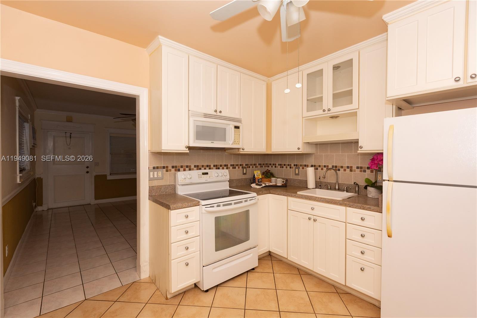 Beautiful 2-bedroom, 1-bath in a well-maintained 55+ two-story community. This second-floor corner unit with front and back entrances offers abundant natural light and excellent cross-ventilation. The bright living room and spacious kitchen each feature two windows, capturing refreshing east-facing breezes. Crown molding throughout adds a refined touch. The generously sized primary bedroom is complemented by a versatile second bedroom—ideal as a guest room, craft space, or reading room. Tile flooring in the main living areas and laminate flooring in the bedrooms. Tankless water heater. Clean and well-kept laundry room. Hurricane Panels in storage. New Surveillance Cameras & Lighting in common areas. Lowest condo maintenance in the area with reserves in place. Near major shopping centers, dining, library, main roads & airport.