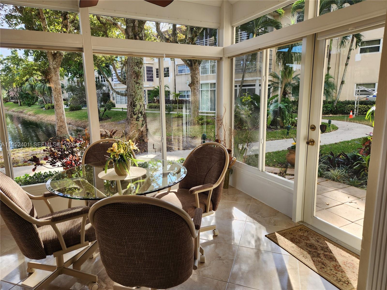 Stunning first-floor condo featuring 2 master bedrooms with a beautiful lake view, located in a quiet corner setting. The corner location adds extra windows, filling the home with natural light. Open kitchen with granite countertops. Enjoy direct access from the Florida room to the walking area, pool, community amenities, and lake. Tile flooring throughout. Upgraded bathroom with spacious walk-in shower and independent entrances for each bedroom.