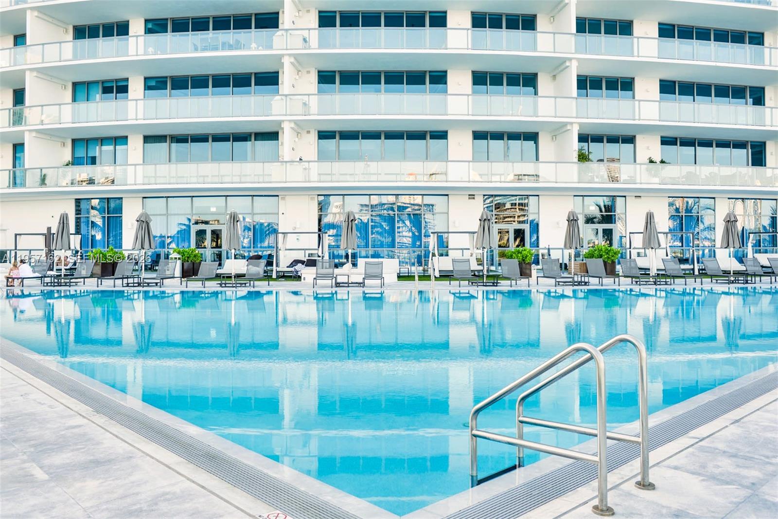 Designed by architect Carlo Ott, Echo Aventura offers privacy & comfort with private elevators and oversized balcony terraces with gas grills for outdoor entertainment. It features 3 bedrooms, 4,5 bathrooms, a maid’s quarters, and custom walk-in closets. This unit is ready for move-in and features porcelain floors and an upgraded kitchen with new countertops. Amenities include an attended waterfront pool, valet service, a fitness center, a spa, and a coffee bar.