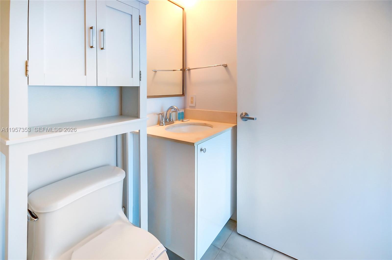 Beautiful loft at Infinity at Brickell featuring soaring double-height ceilings and floor-to-ceiling windows that fill the space with natural light. The upper level offers a spacious bedroom and full bathroom, while the main level includes a convenient half bath, open living area, and modern kitchen with stainless steel appliances and contemporary cabinetry. Full-service building with 24-hour concierge, security, pool, fitness center, and prime Brickell location within walking distance to restaurants, shopping, and entertainment.