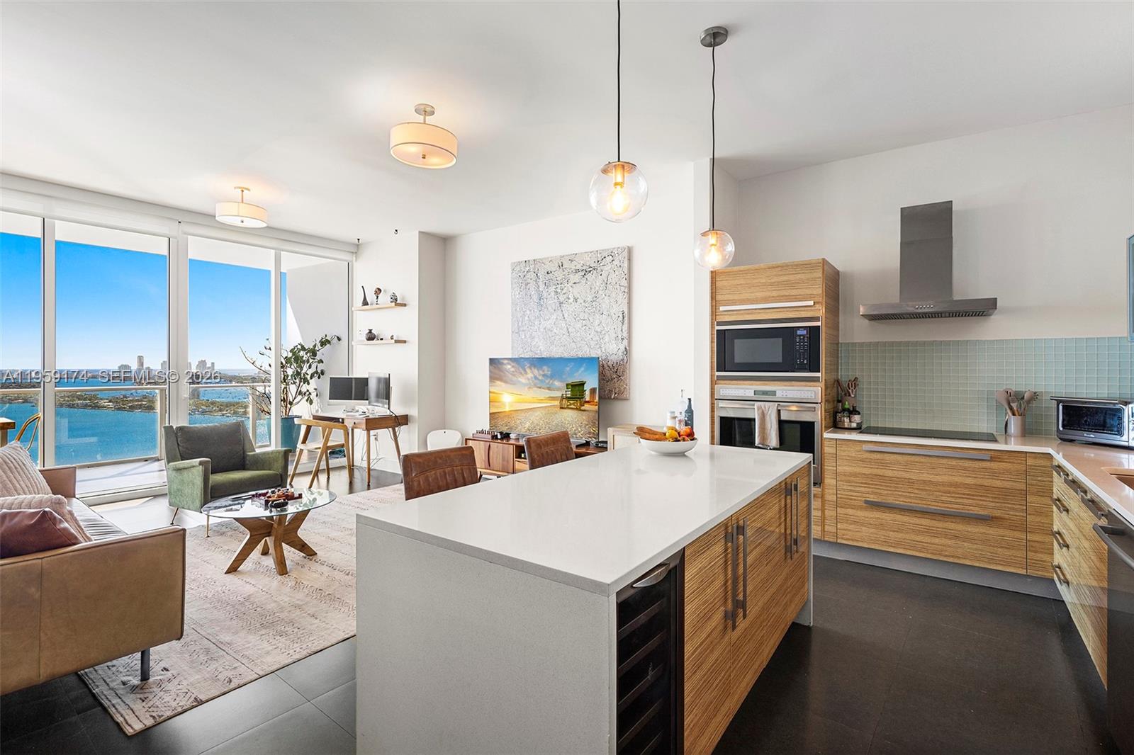 Turnkey 2-bed residence at Paramount Bay featuring floor-to-ceiling windows with stunning unobstructed bay views and 10ft ceilings. This elegant unit offers private elevator and foyer access, a spacious terrace perfect for entertaining, and modern kitchen with sleek finishes. The master suite includes a walk-in closet and bathroom with dual sinks. In-unit washer/dryer included. Residents enjoy resort-style amenities including sunrise and sunset pools, spa, fitness center, theater, BBQ area, game room, club room, and full-service concierge. Prime location in the heart of Miami's Edgewater ensures effortless access to vibrant dining, shopping, and entertainment options, complemented by the nearby scenic Margaret Pace Park and close to Miami Beach and Downtown.
