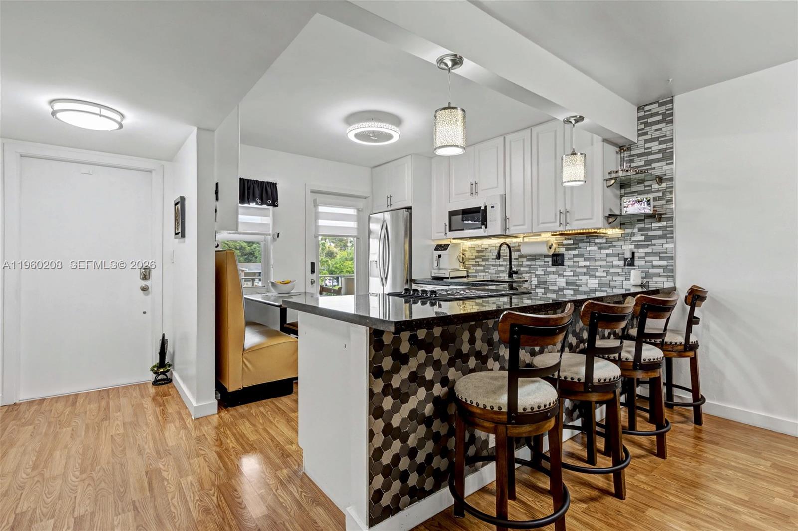 ALL AGES WELCOME! Outstanding 2/2 corner unit with a double balcony featuring endless garden and pool views. This open floor plan unit has it all. Upgraded white wood kitchen cabinets with beautiful granite countertops and SS appliances. White built-ins throughout the unit offering endless amounts of storage space. Hurricane impact windows and doors. Custom blinds throughout. Beautiful flooring throughout. Upgraded a/c and hot water heater. Spacious master bedroom with full ensuite with sliders doors leading out to the balcony. Fully upgraded baths. *Low maintenance* Building enjoys heated pool and extra storage. Community offers miles of private walking paths, clubhouse and pickleball/tennis. Hillcrest is in the heart of Hollywood close to shopping, dining, beaches, Hardrock Hotel & Casino, All major highways, Ft. Lauderdale Airport, Las Olas and the Famous Hollywood Boardwalk. NO LEASING. ONE CAR ONLY.