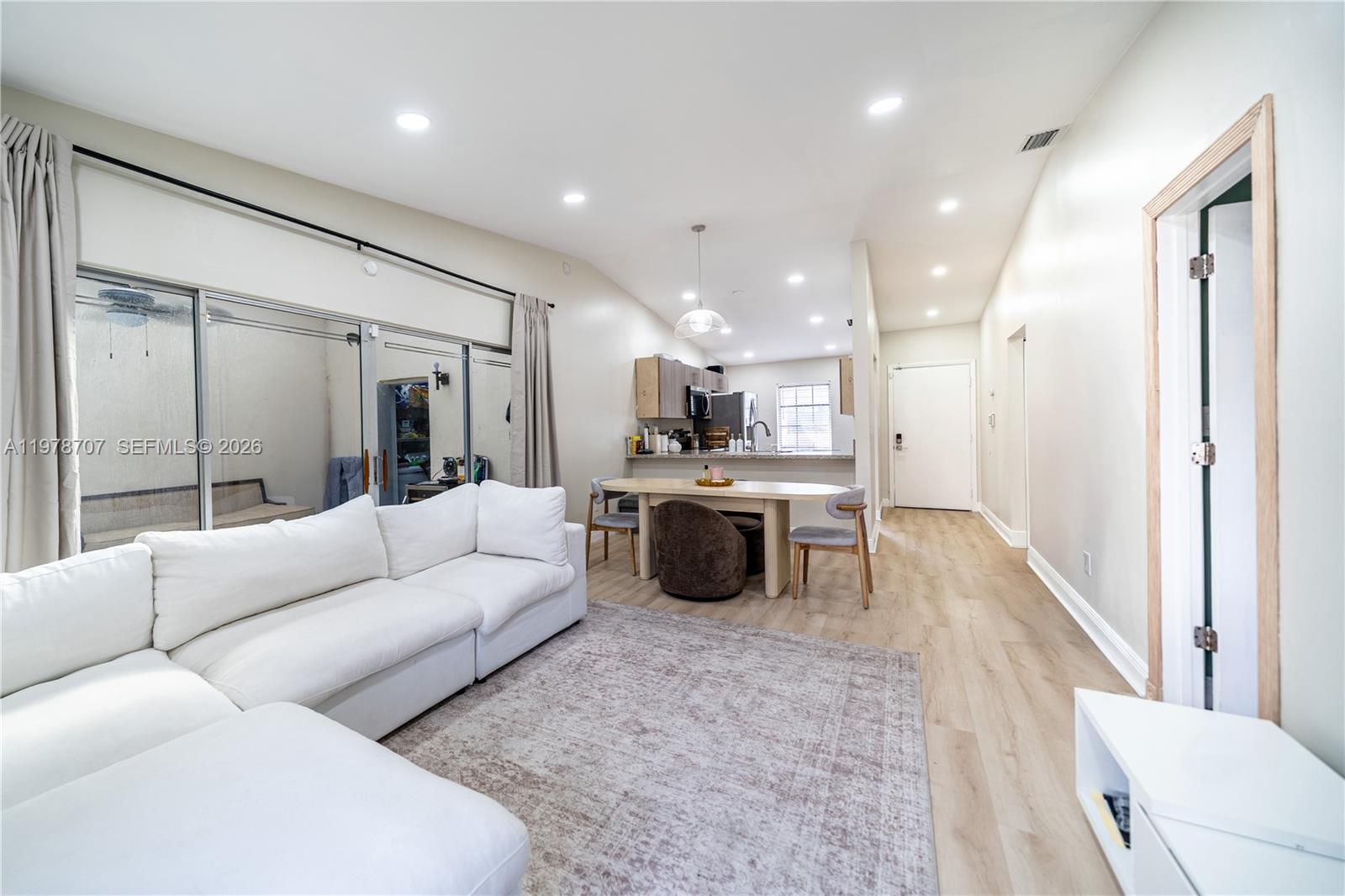 Beautifully maintained 2-bedroom, 2-bath villa in the desirable Meadows of Miramar! This centrally located home features a remodeled kitchen with breakfast area, stainless steel refrigerator, and modern appliances, perfect for everyday living and entertaining. The property also offers updated bathrooms, a split-bedroom floor plan for added privacy, and fresh interior paint throughout. Enjoy relaxing outdoors with a tiled front porch, newly installed sod lawn, and a full screened patio accessible through the oversized 1-car garage with rear door access. The layout provides comfort, functionality, and a move-in-ready feel. Conveniently located near the Miramar Police and Fire Stations, shopping, public transportation, and places of worship, with easy access to major highways and main thoroughfares, making commuting simple. Clean, well-maintained, and ready to show. Don’t miss this opportunity!